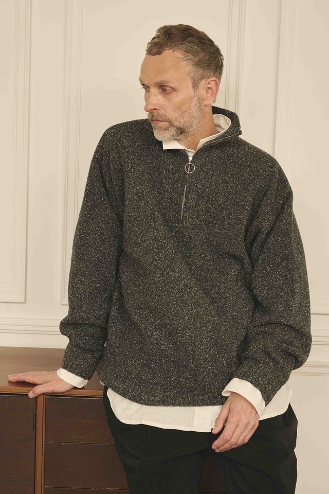 素材、シルエットにこだわったZIP HOODEI。カジュアル、ラフになりがちなアイテムですが上質な柔らかで膨らみのあるダンボールニット(ポリエステル)を採用することで軽やか、上品、高機能な通年素材として楽しめる羽織にグレードアップ。ラグランスリーブで切り替えの入ったデザインもシンプルな中にブランドらしい主張の入っています。本来非常に着やすいジップパーカーを大人が着れる仕様にしてくれたのが何より嬉しい。