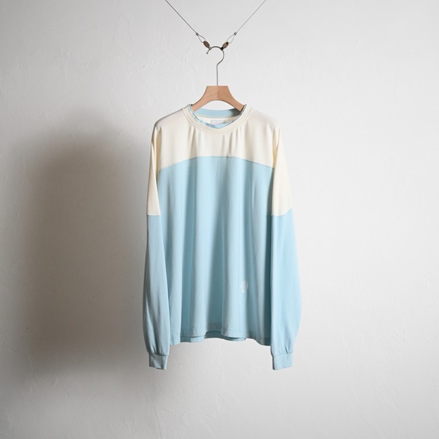 トロミのあるレーヨン、コットンにストレッチを入れた着心地のよりフットボールロングスリーブT。襟元のレイヤー風デザインはVINTAGEのスポーツウェアをイメージしてます。切り替えの配色にもこだわり、レトロなサーフスケートを現代的解釈で落とし込んでます。また、レタークロス刺繍が左脇にさり気ない位置で色合わせDE配置されてます。 長い暑い時期を快適に着用できデザイン性も高いロンTです。 Material.Rayon51%・Cotton42%・Polyurethane7% Made in China SIZE GUIDE/cm M L XL 着丈 70 72 75 身幅 59 61 63 肩幅 58 60 62 袖丈 60 61 62