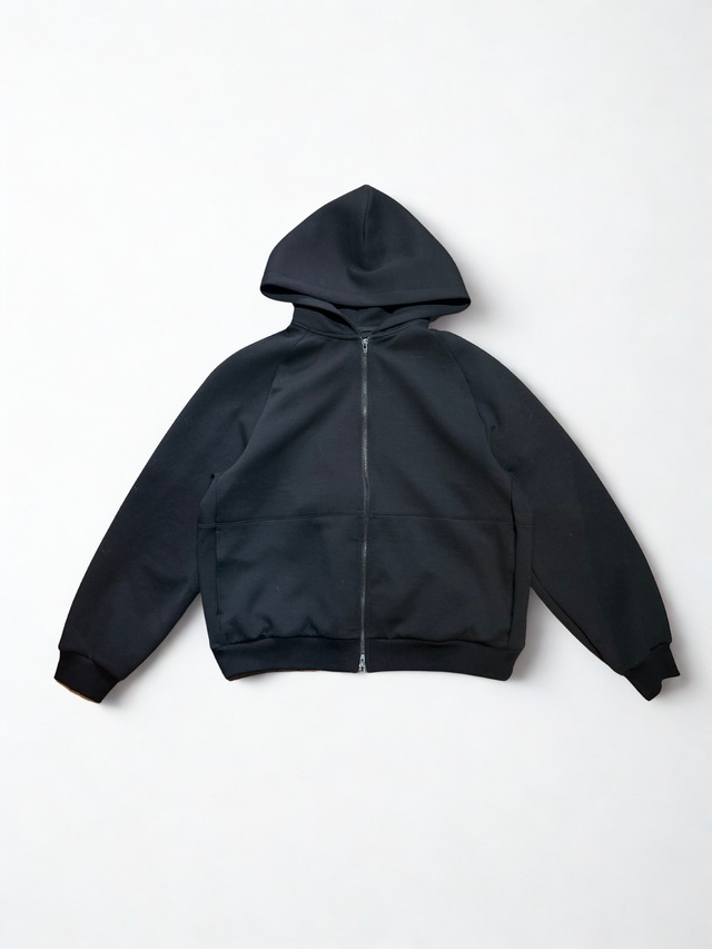 素材、シルエットにこだわったZIP HOODEI。カジュアル、ラフになりがちなアイテムですが上質な柔らかで膨らみのあるダンボールニット(ポリエステル)を採用することで軽やか、上品、高機能な通年素材として楽しめる羽織にグレードアップ。ラグランスリーブで切り替えの入ったデザインもシンプルな中にブランドらしい主張の入っています。本来非常に着やすいジップパーカーを大人が着れる仕様にしてくれたのが何より嬉しい。