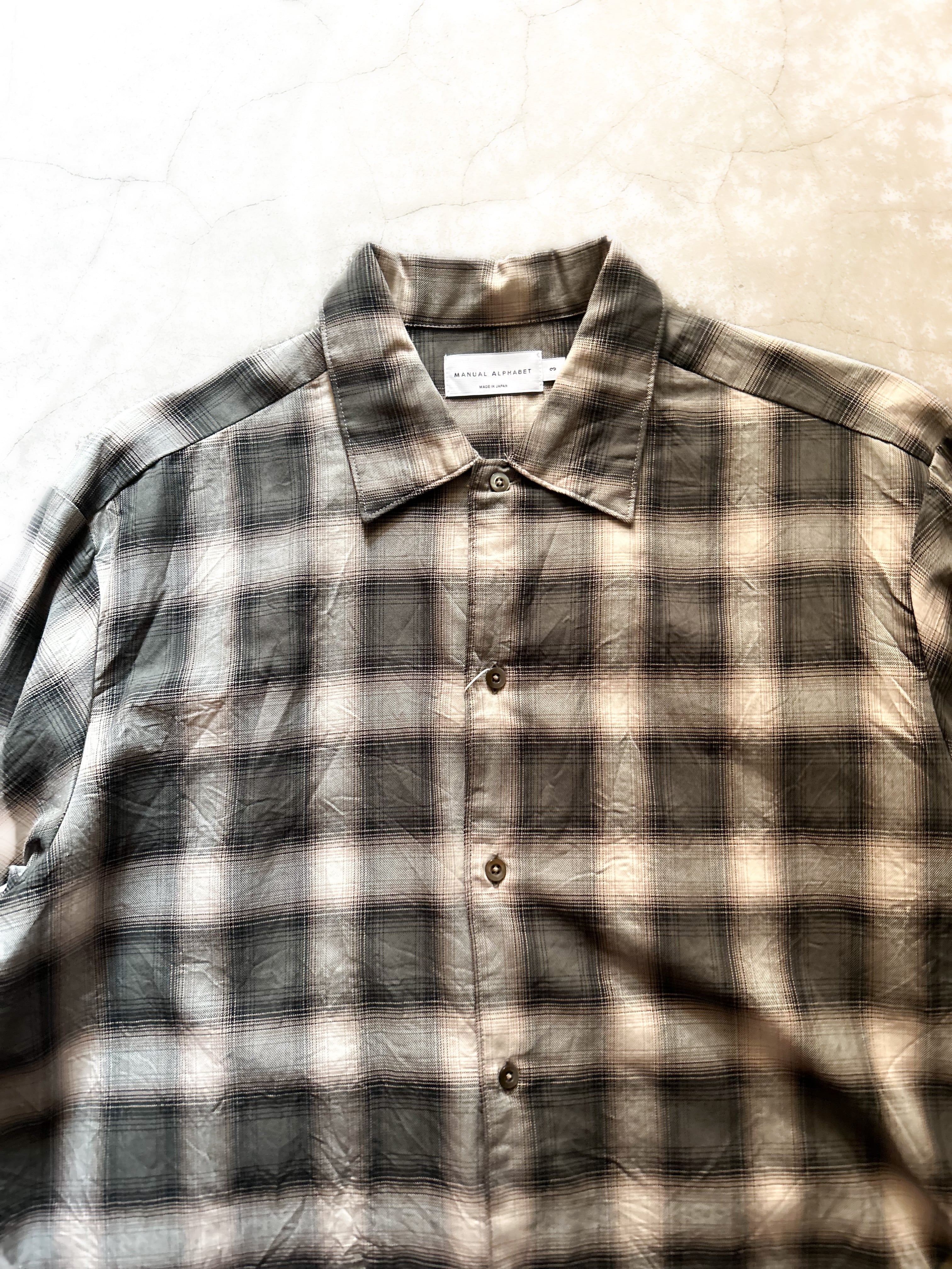 オンブレーチェックのオープンカラーシャツ