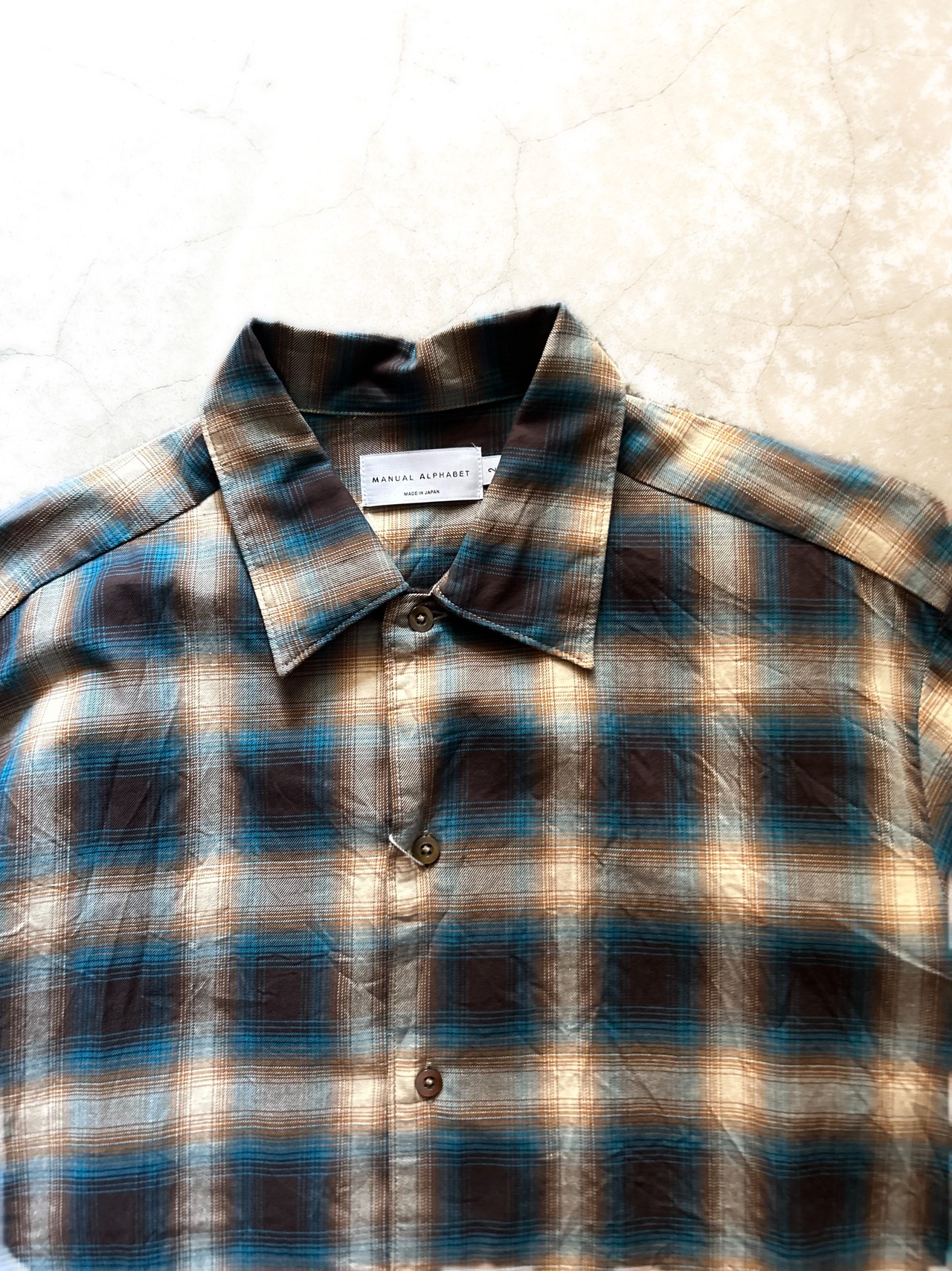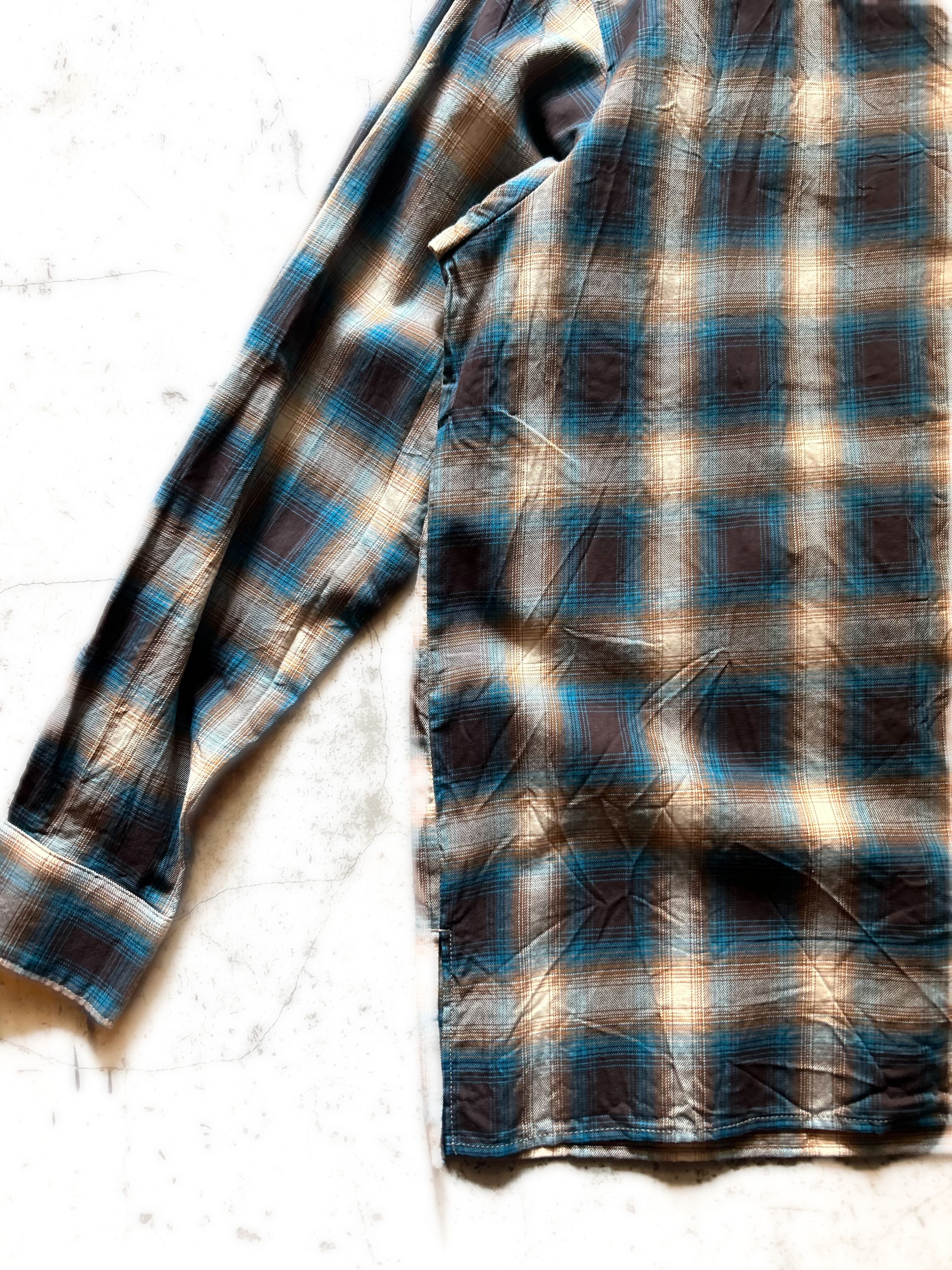 オンブレーチェックのオープンカラーシャツ
