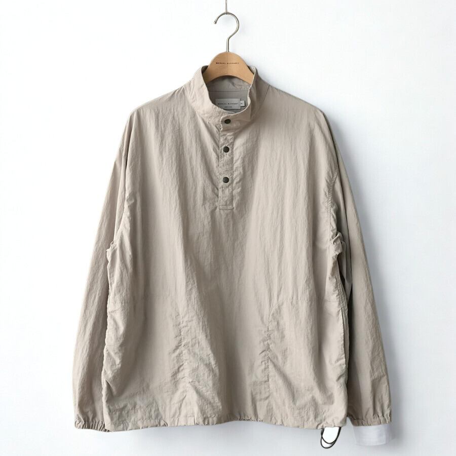 アウトドア、スポーツに振りがちなナイロンアノラックをシンプルにタウンユースに落とし込まれデザインでたマルチに使える汎用性の高いアイテムに仕上がりました。