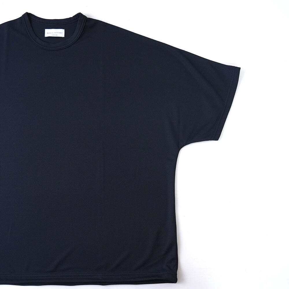 吸水速乾、UVカット、抗ピリング機能など夏を快適に過ごすためのな着心地と機能性を追求したコットンライクな風合いのポリエステル糸の天竺を使用。