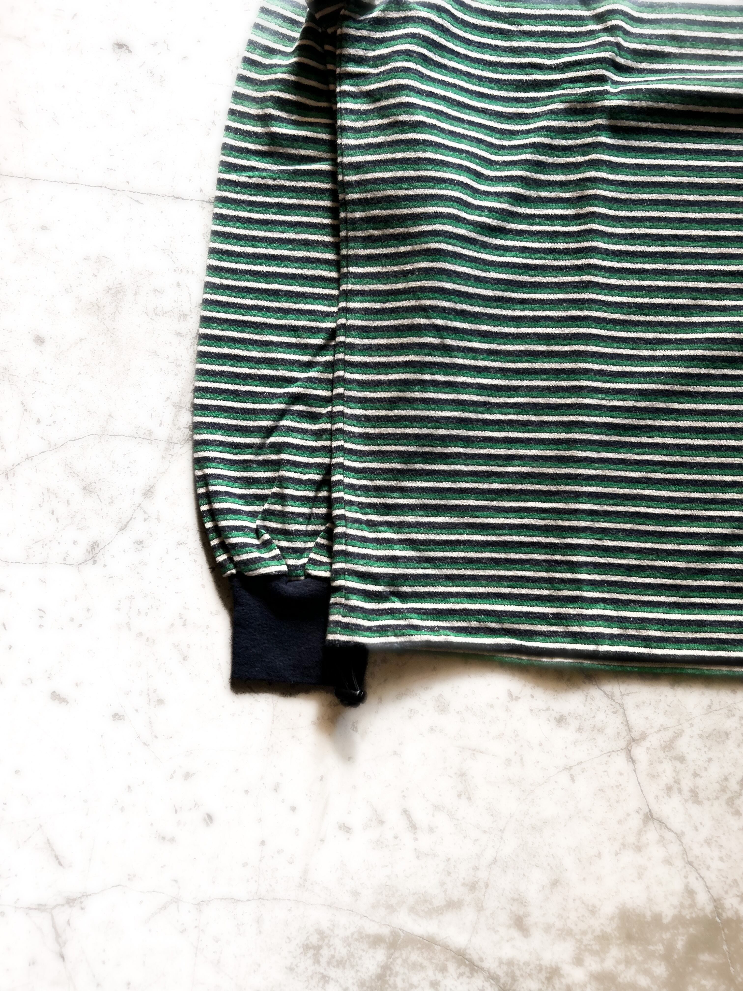 レトロな配色のボーダーロングスリーブTは裾にスピンドルを入れる事で丈の調整やボリューム感を楽しめます。