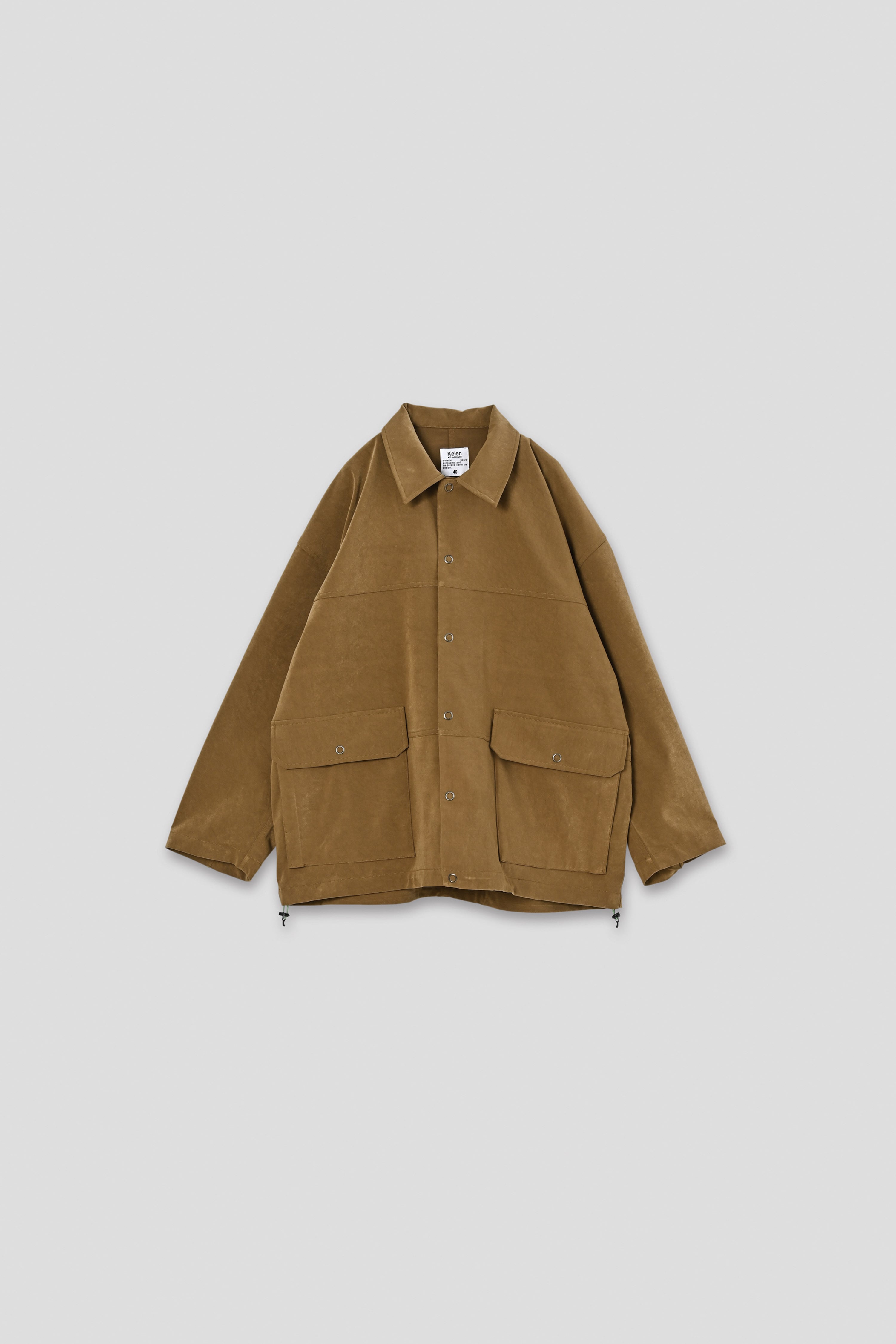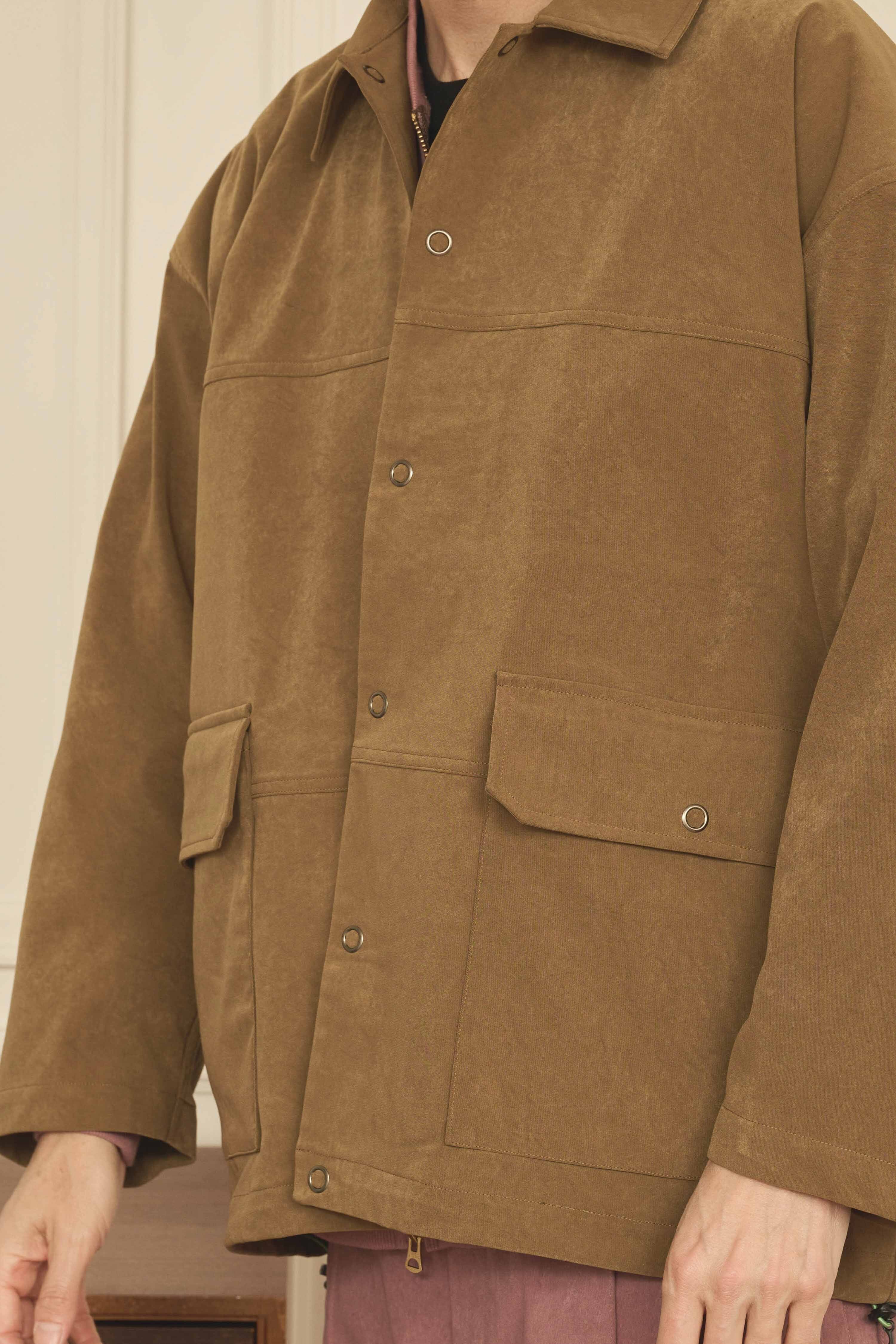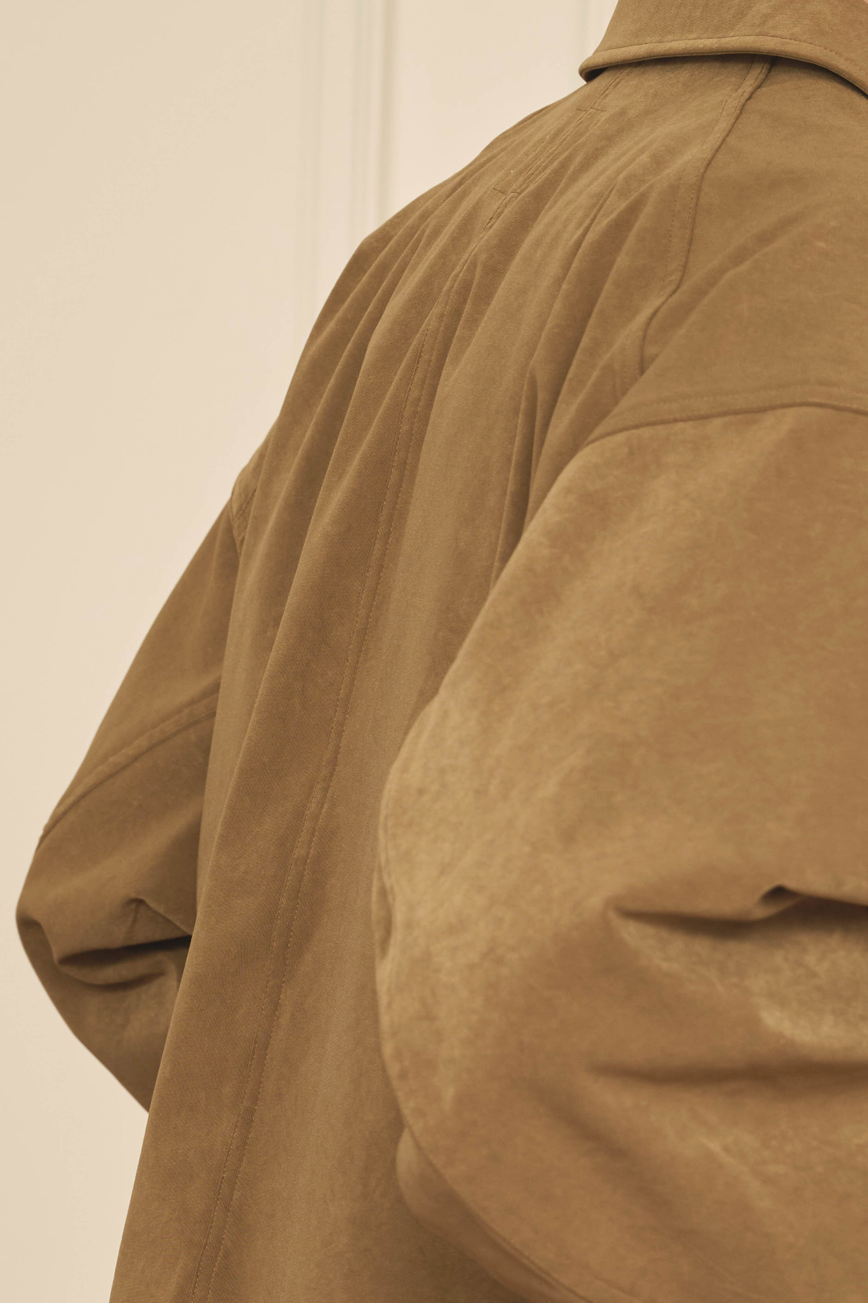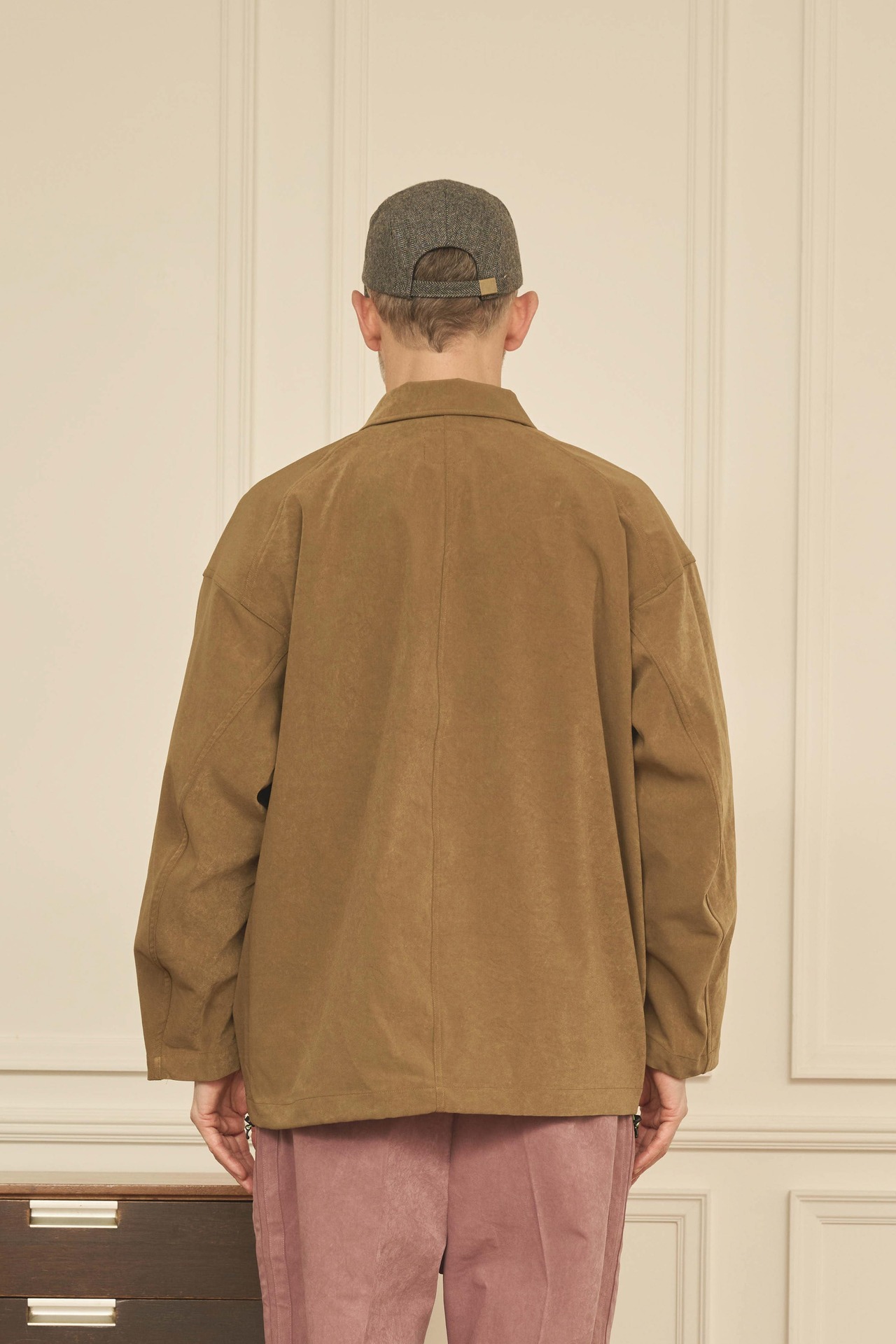 リアルな表情のヴィーガンスエード素材を使用したカバーオール。