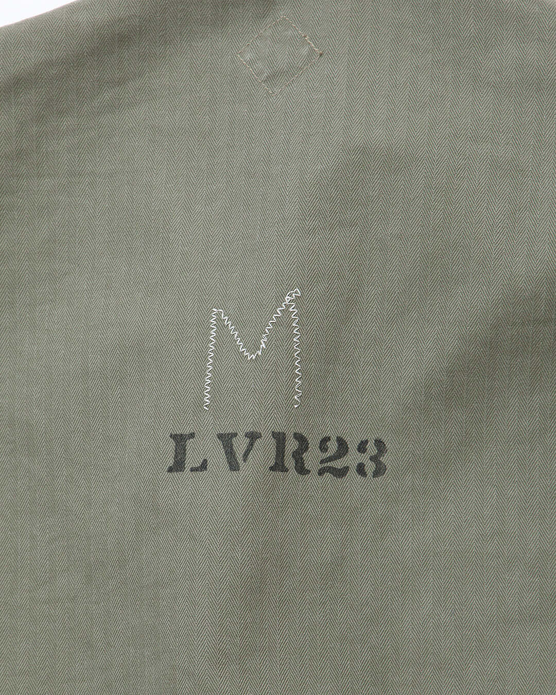 1940年代のUSMC (US MARINE CORPS)のユーティリティユニフォームで使用されていたヘリンボーンツイルをレプリカした生地。