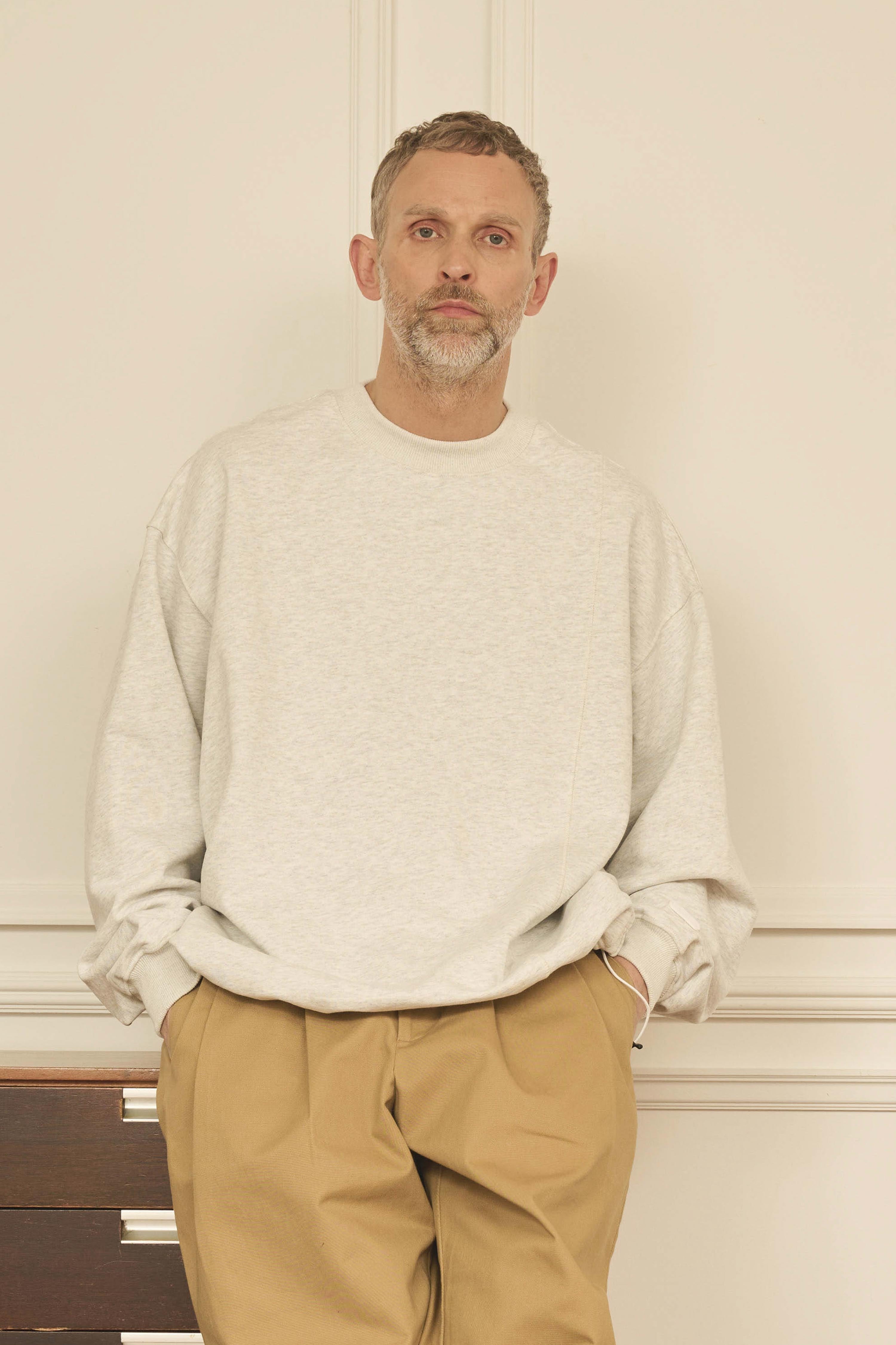 柔らかい吊り裏毛を使用したクルーネックトップ。