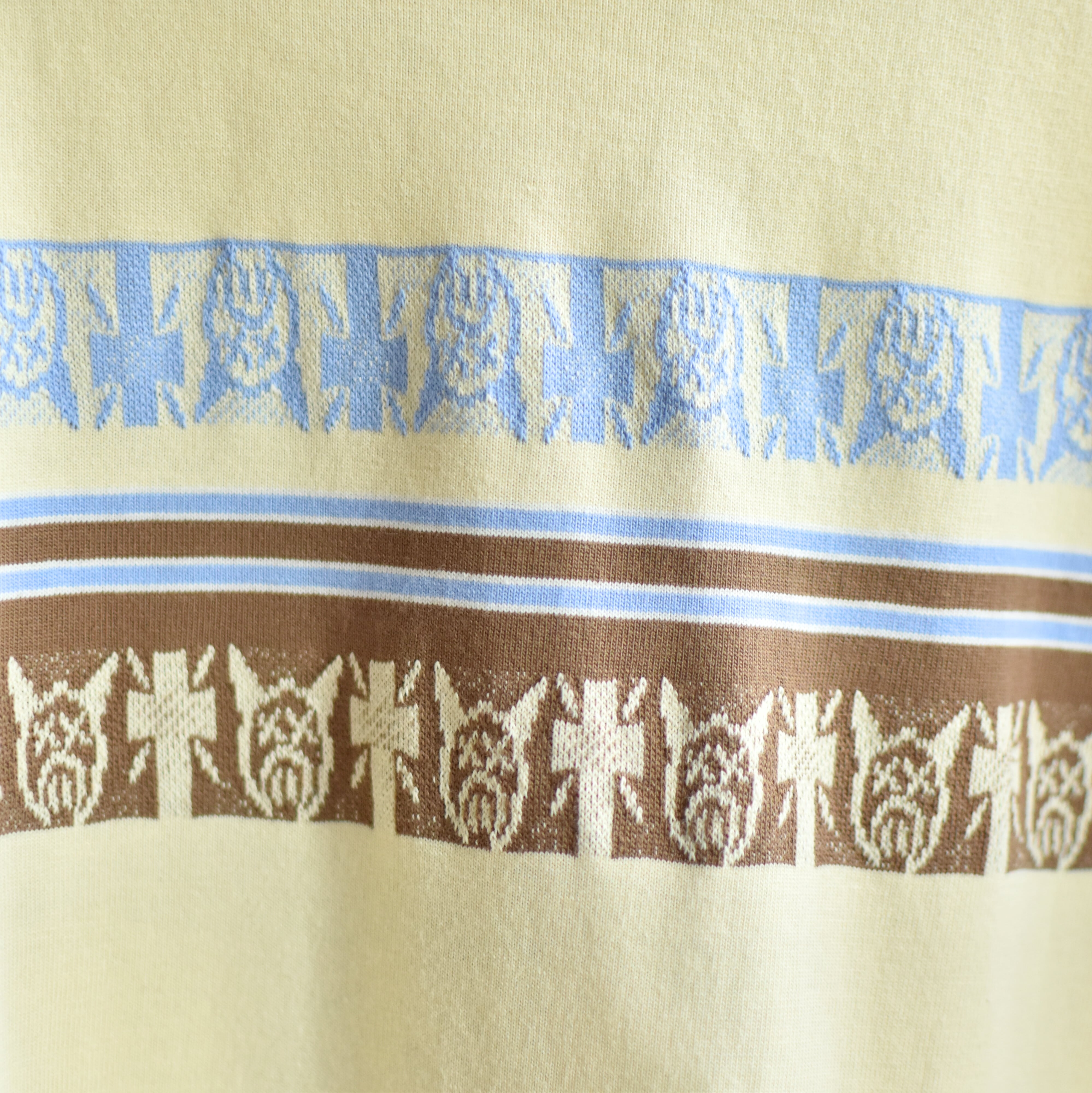 オリジナルのジャガードボーダーロングスリーブTEE。90sジャガードで柄でクロスロゴ、PIGアイコンをボーダーで表現した印象的で贅沢なデザインTEEです。配色にも拘り他にない仕上がりとバランスです。ジャガードでの贅沢な表現が素敵です。
