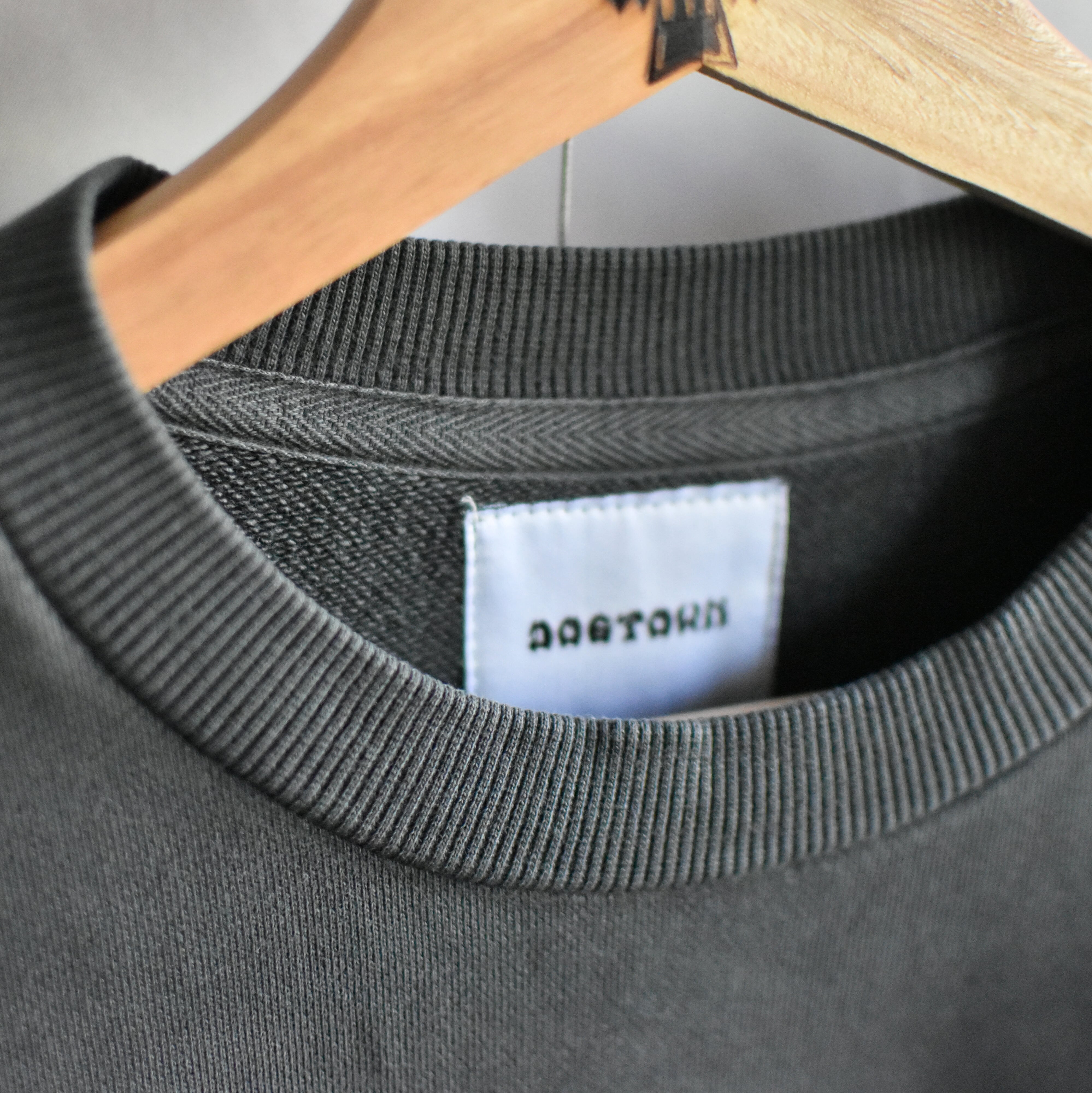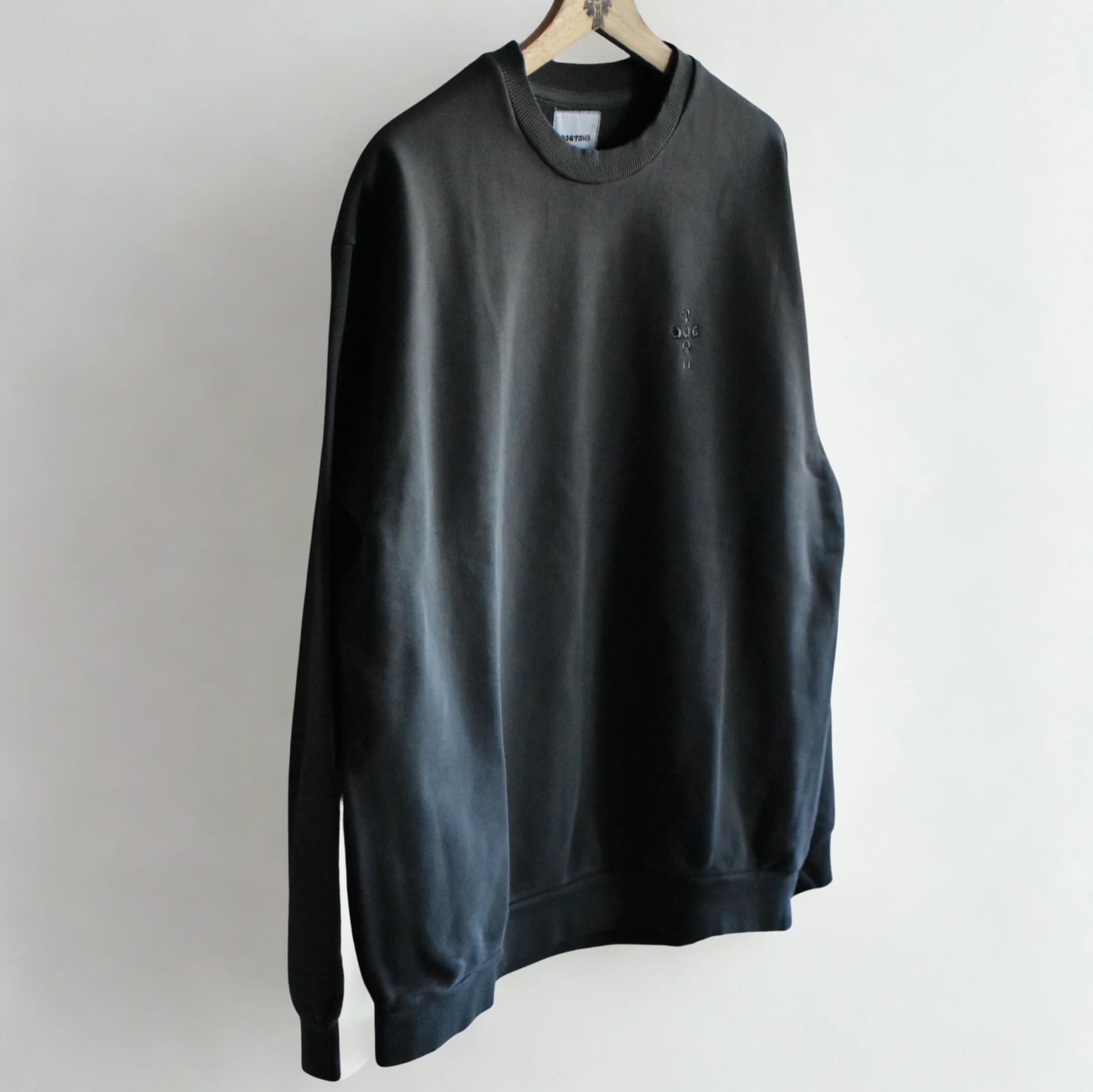 バックプリントに”SKATE TO LIVE”グラフィックがフロッキープリントで同色で配置、フロントはクロスロゴが刺繍で同じく同色で配置された落ち着いた雰囲気のクルースウェット。12ozのヘヴィー過ぎないしっかりとした度詰め生地にピグメント加工を施し、エイジング感を出してますが全体的に綺麗な仕上がりです。