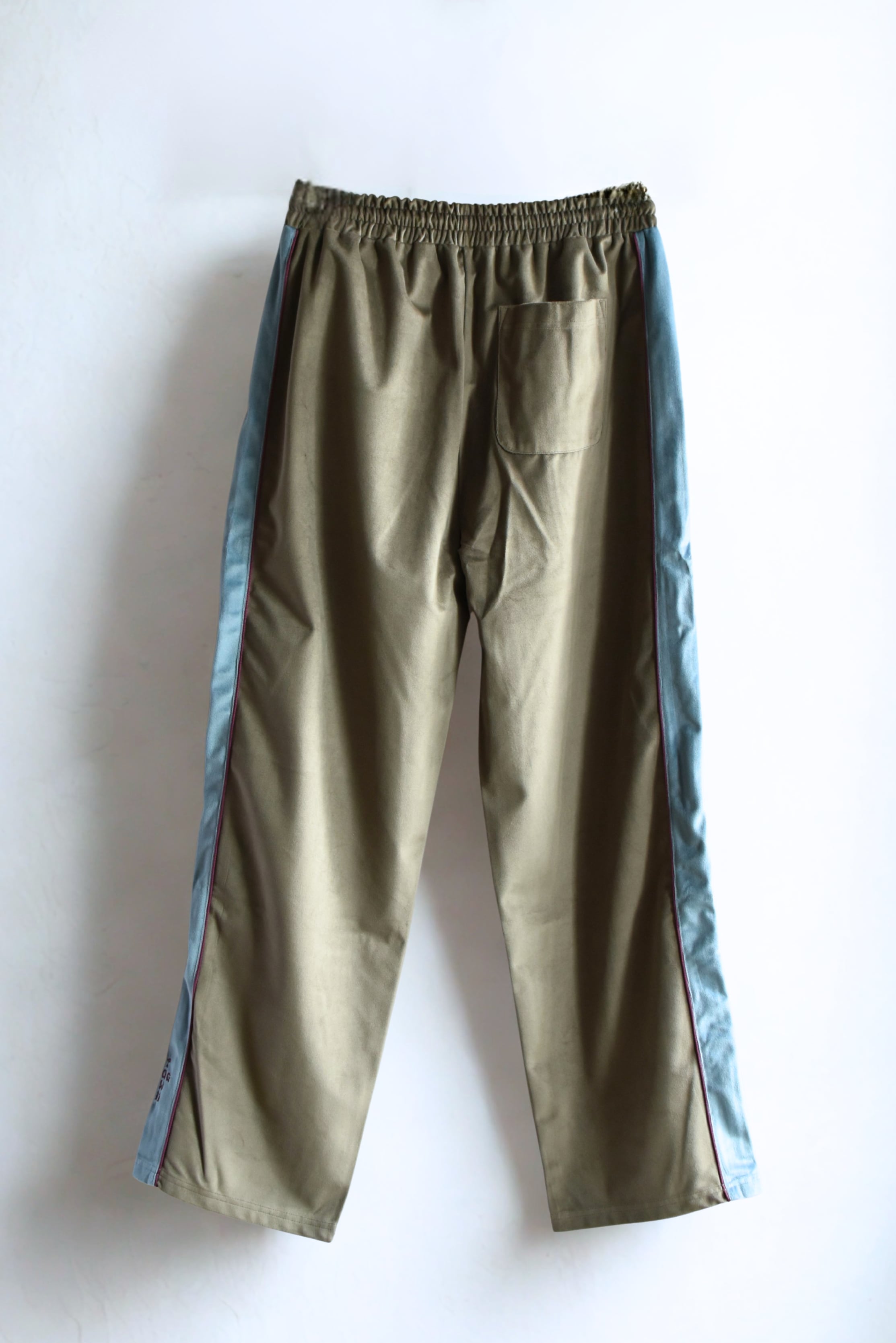 ベロアのトラックパンツ。割とストレートシルエットでカラーパイピングと切り替え配色がポイントのオールドスクールなストリートを感じる一本です。
