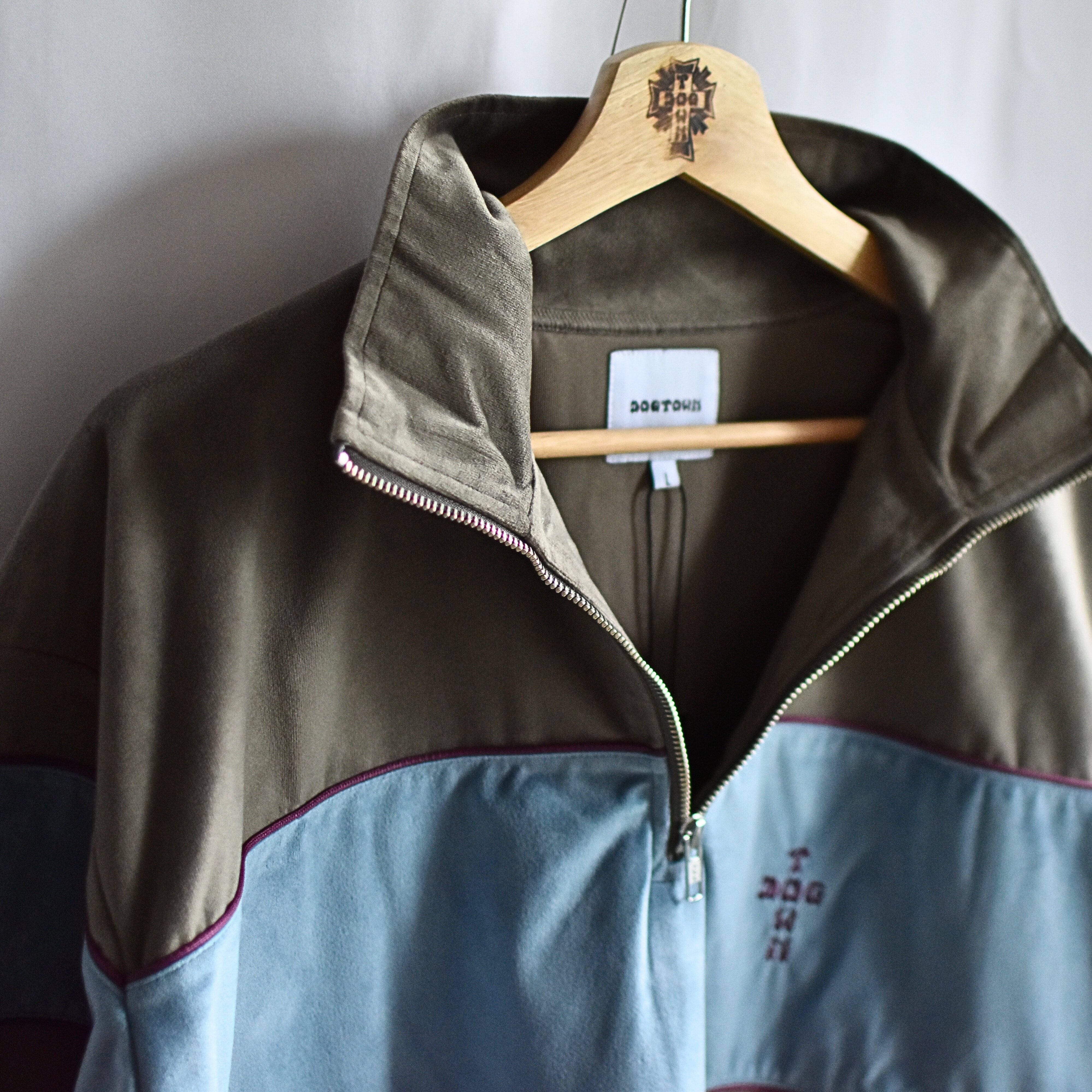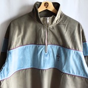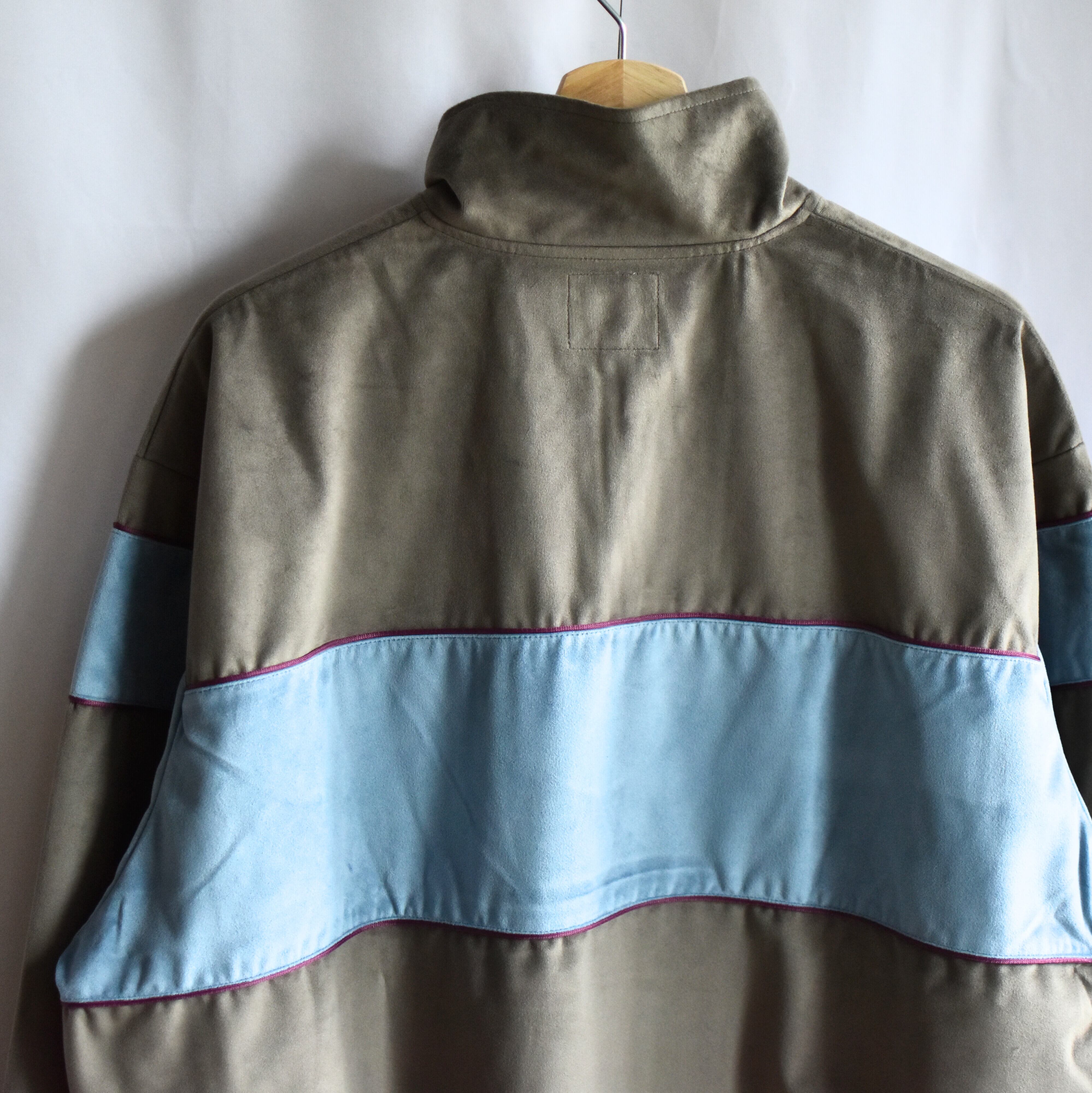 ベロアのハーフジップトラックJKT。カラーパイピングと切り替え配色がポイントのオールドスクールなストリートを感じる一枚です。