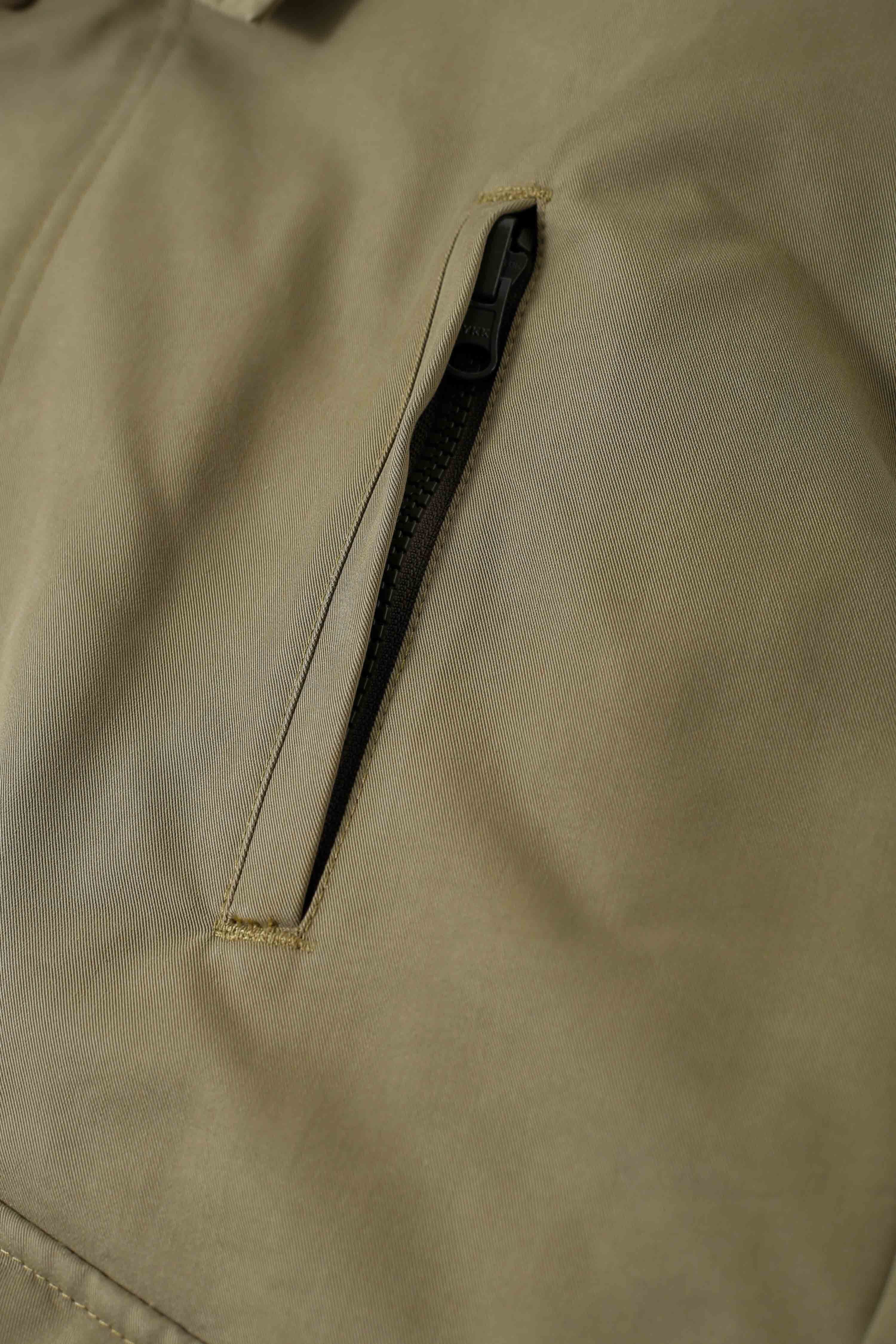 ミリタリーモチーフの両脇ポケットと胸元にジップ付きのポケット。