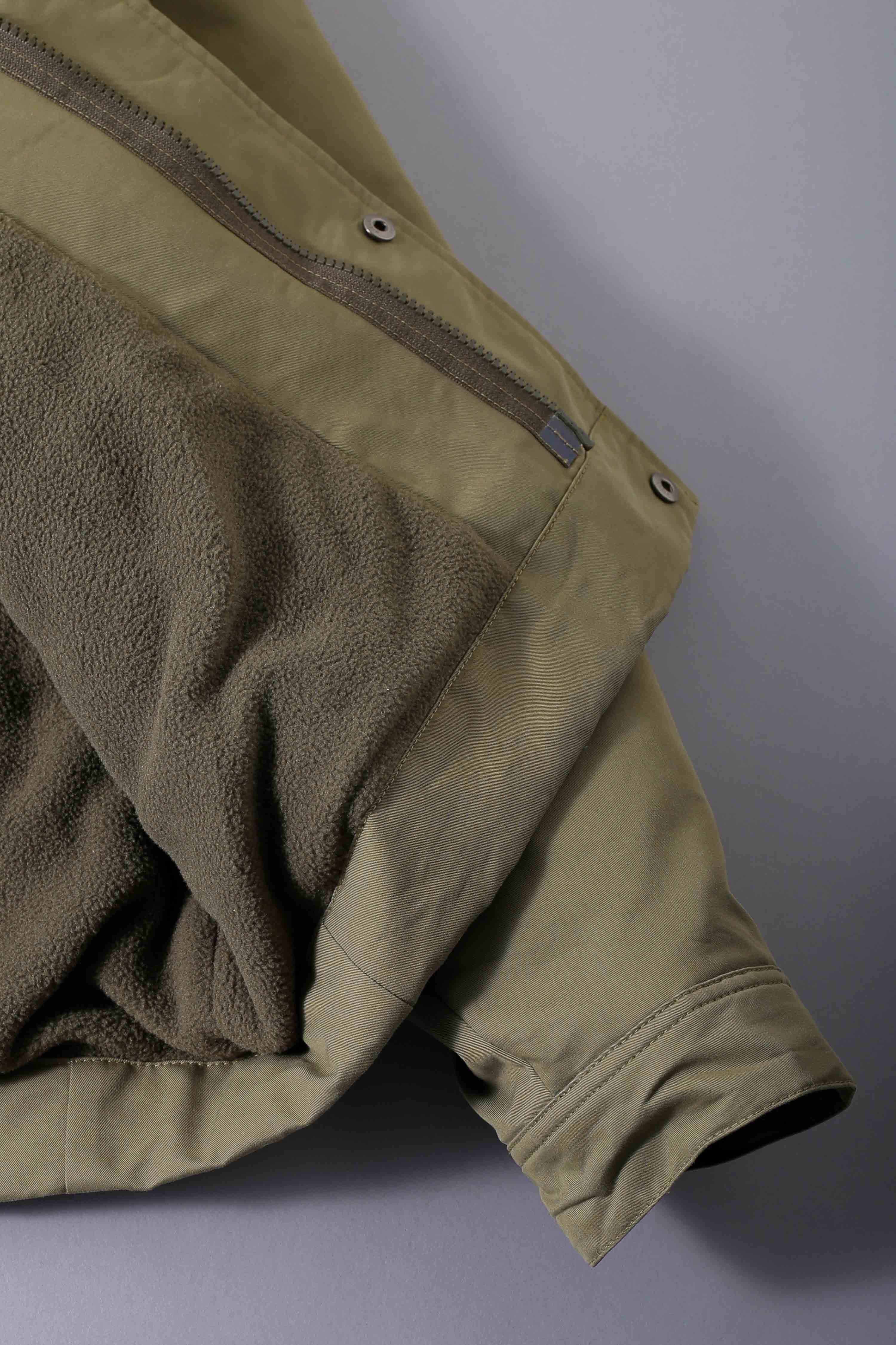 身頃の裏地はフリースを使用し、袖の裏地はナイロンと中綿キルティングを採用。