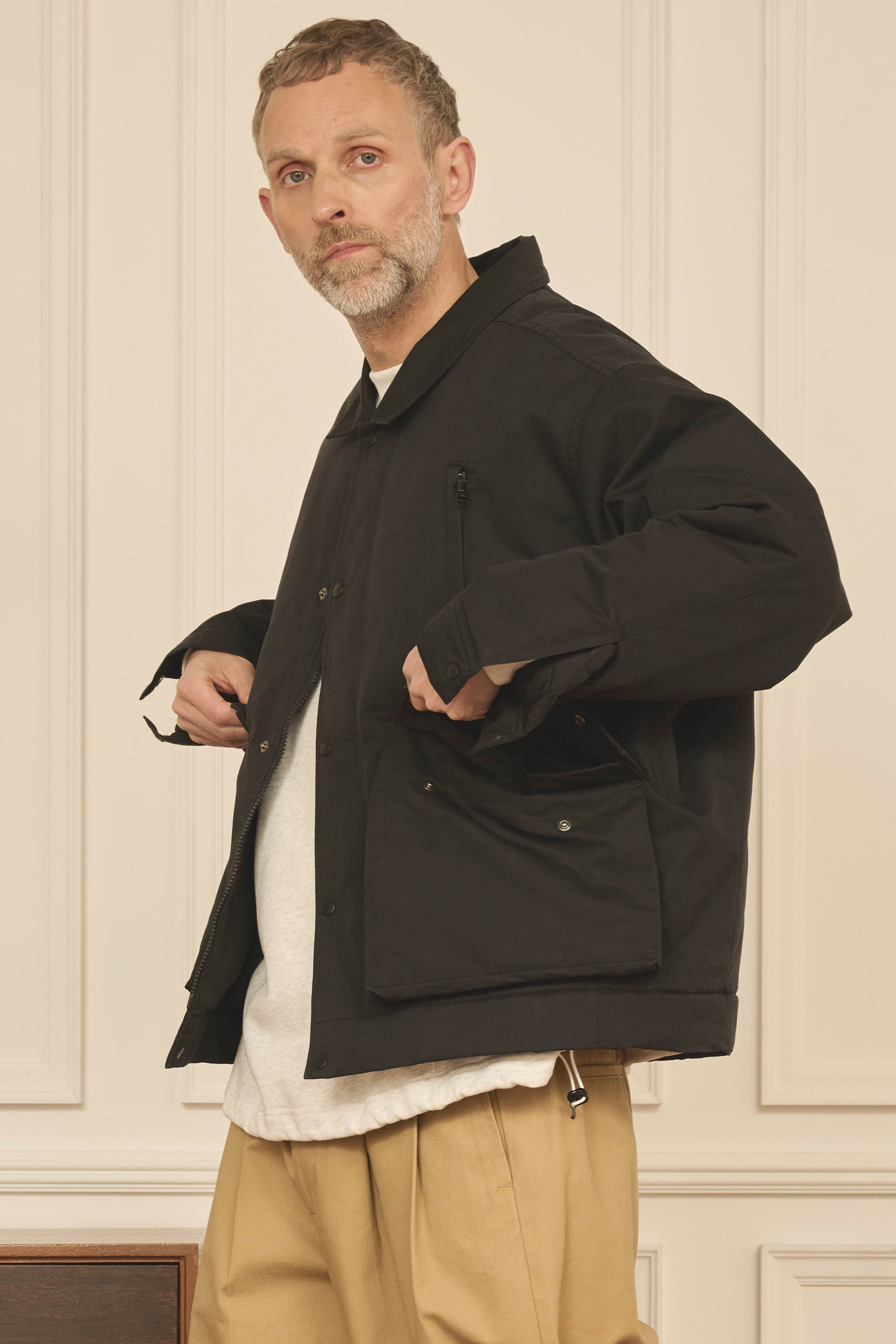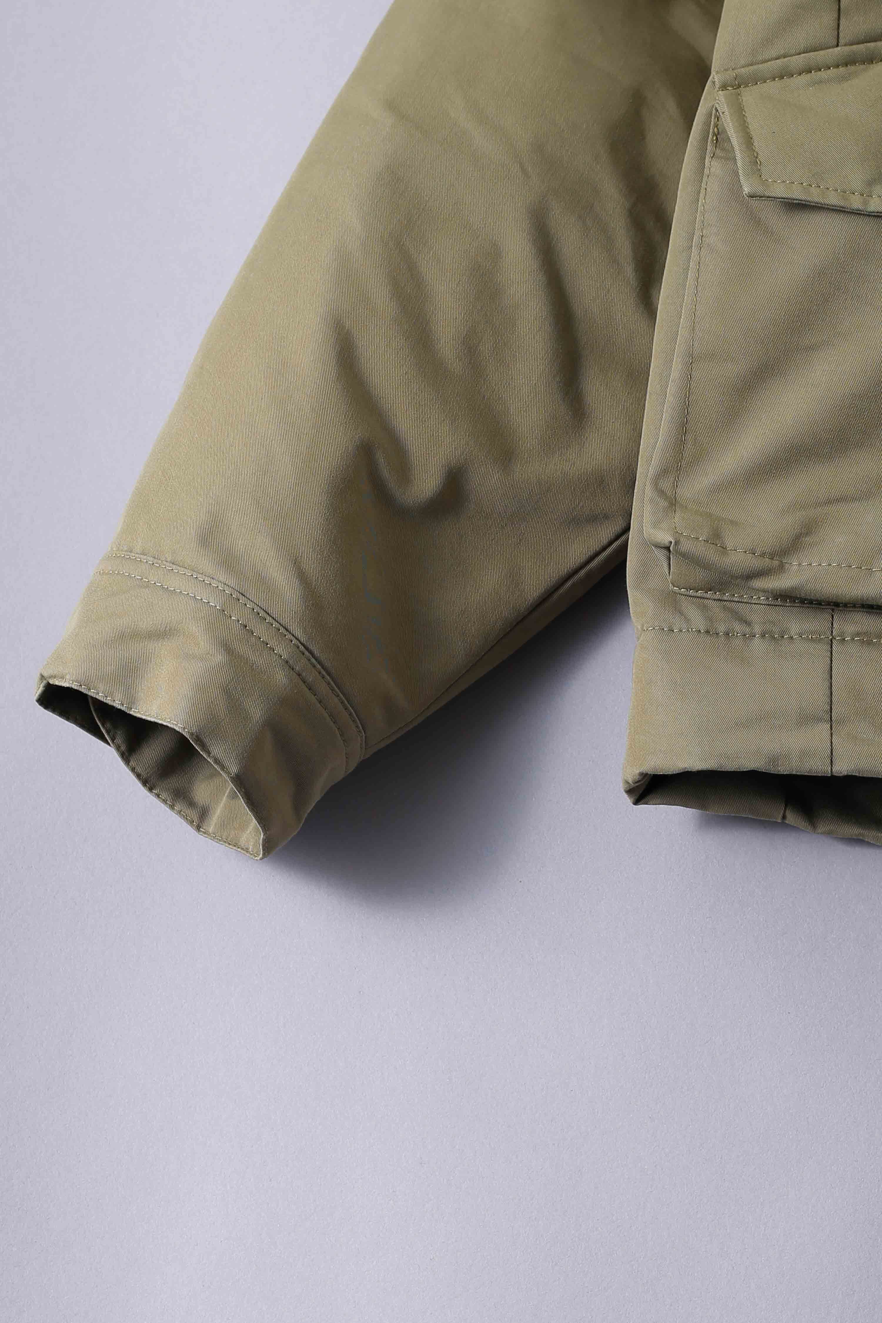 綿ポリエステルツイルを使用した中綿入りのショートジャケット。