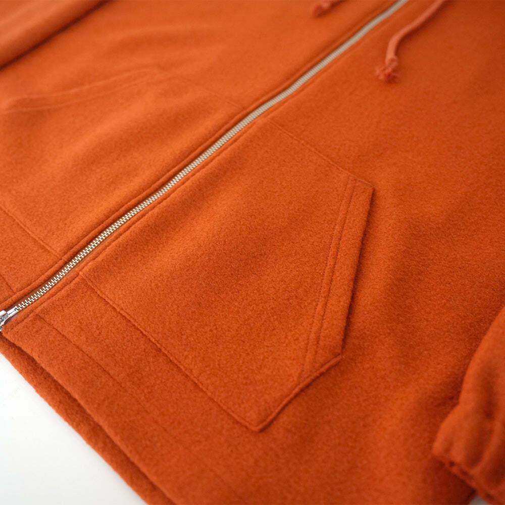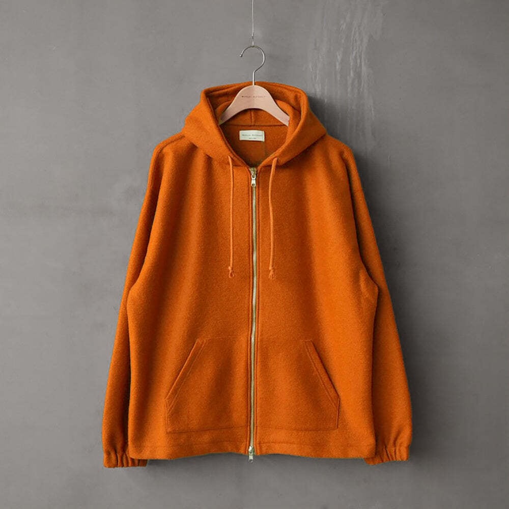 ウールナイロンのブークレージャージー生地を使用したフルジップパーカー。