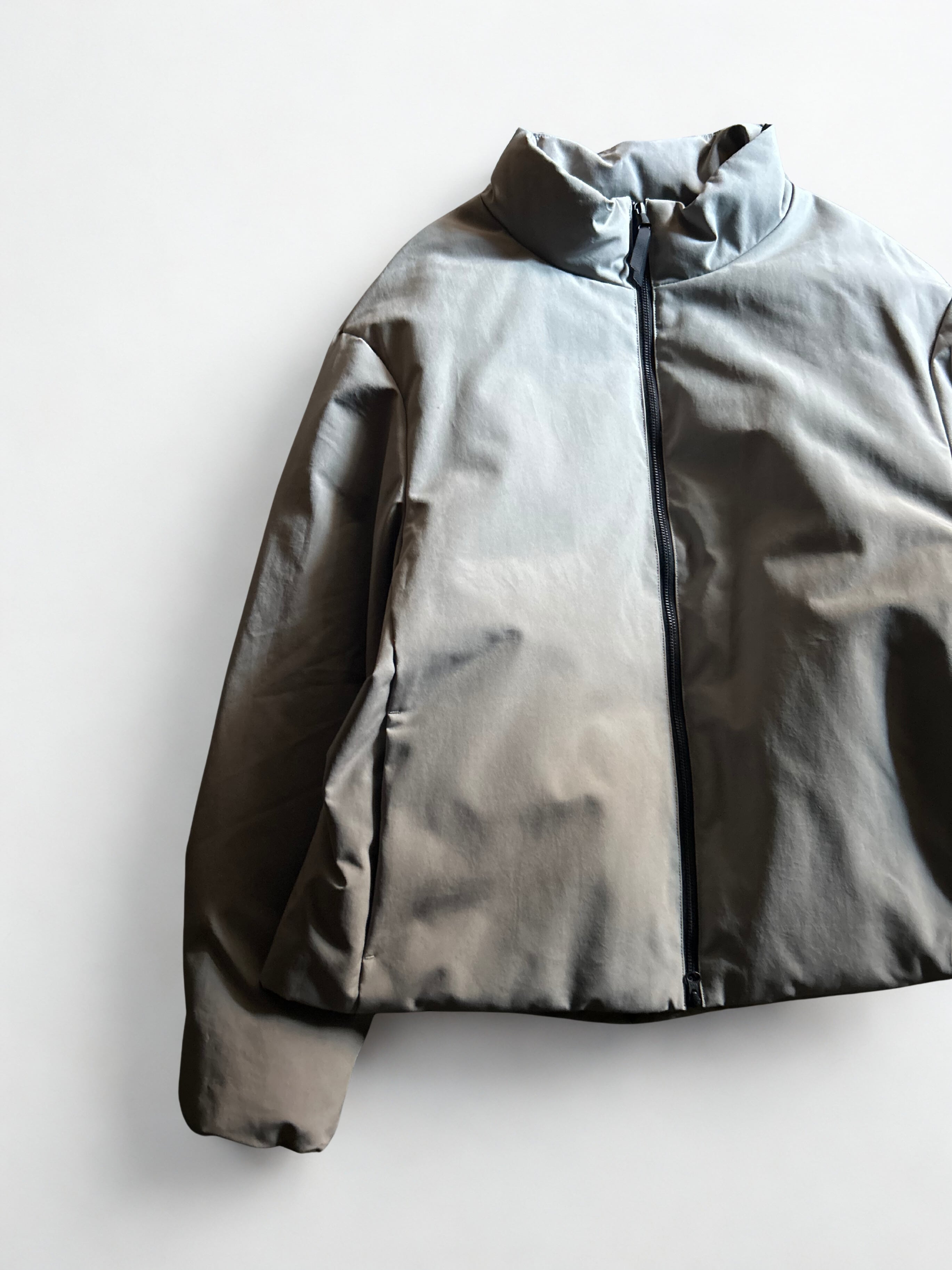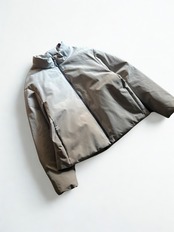 高密度の撥水性のあるナイロンウェザークロスを使用し中綿にはダウン90%・フェザー10%でタウンユース向きのダウン量に設定されています。ショート丈のブルゾンタイプでフォルムの良いスタンドカラーが今っぽくアームホールもゆったりしているので着回しも効きます。ダブルジップ仕様、裾にはドローコードが配置されシルエット調整ができます。