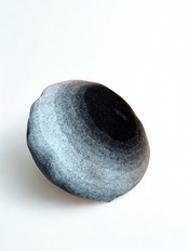 編み込んだ糸を縮絨させることによって、フェルトのような風合いに仕上げたウールニットベレー帽。
