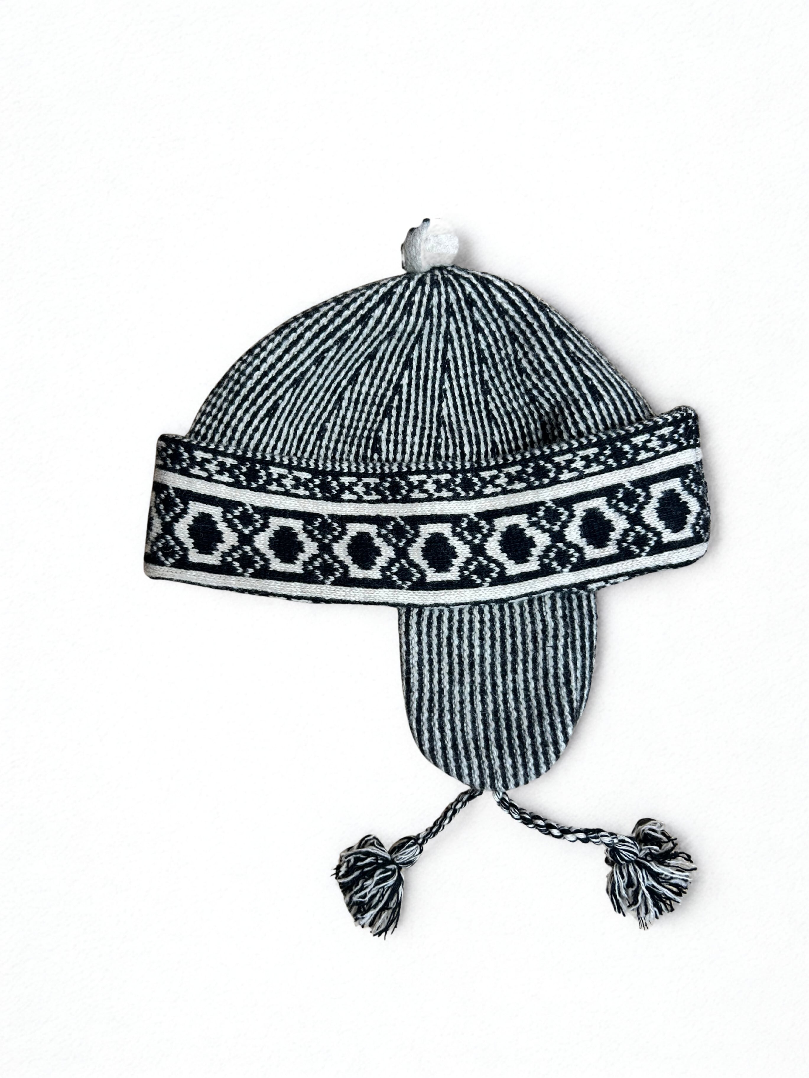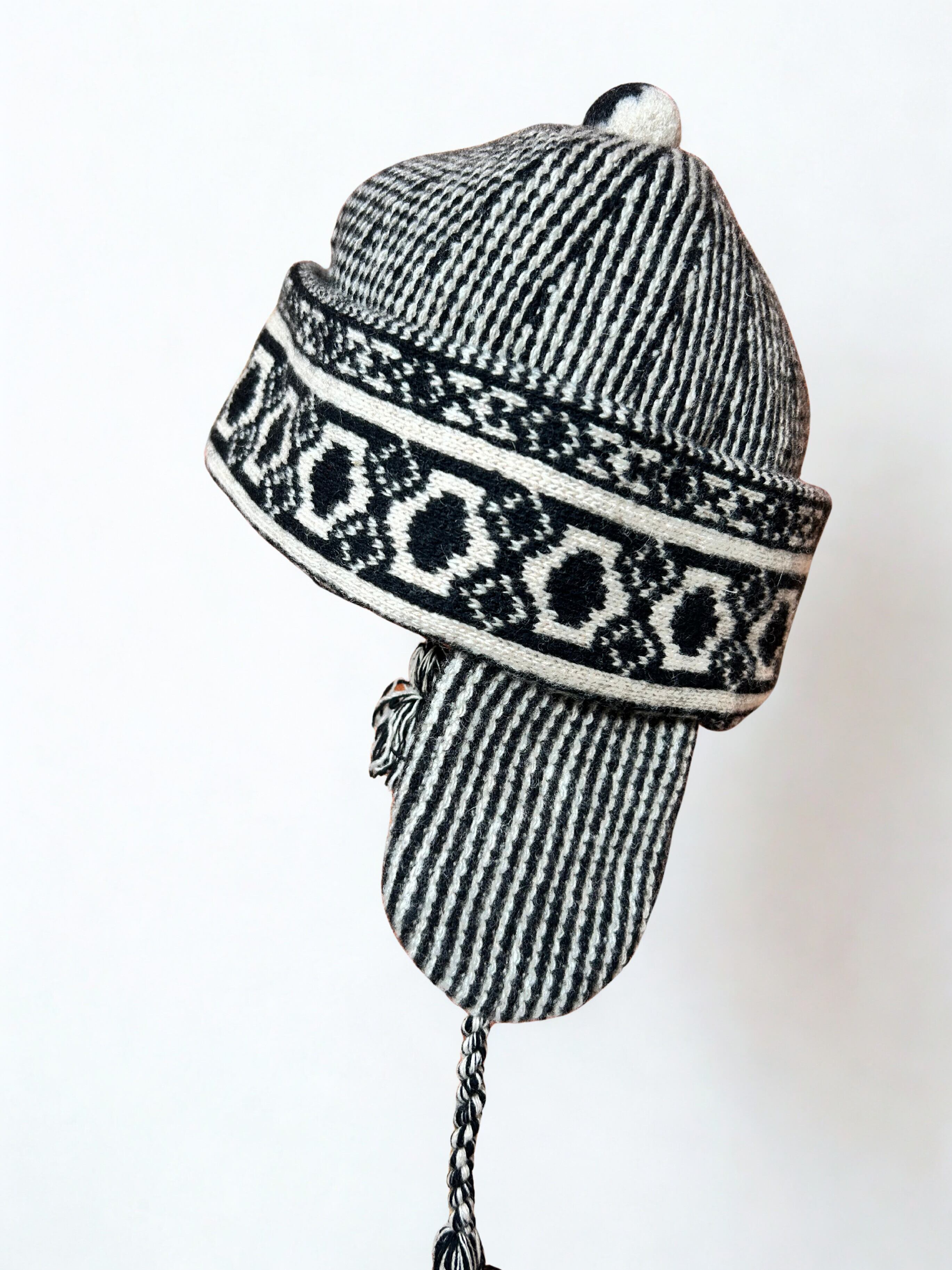 中東の遊牧民が着用している、帽子のテキスタイルから着想を得たニットキャップ。