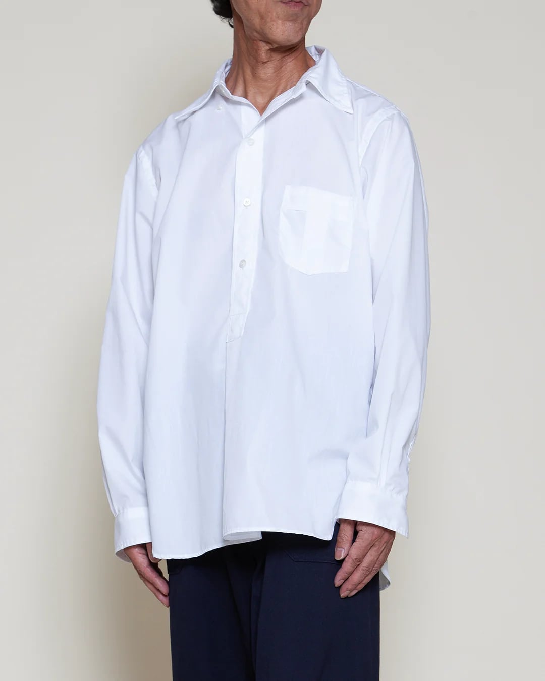 プルオーバーならではのゆったりとしたサイズ感で、快適さと洗練されたスタイルを両立しています。