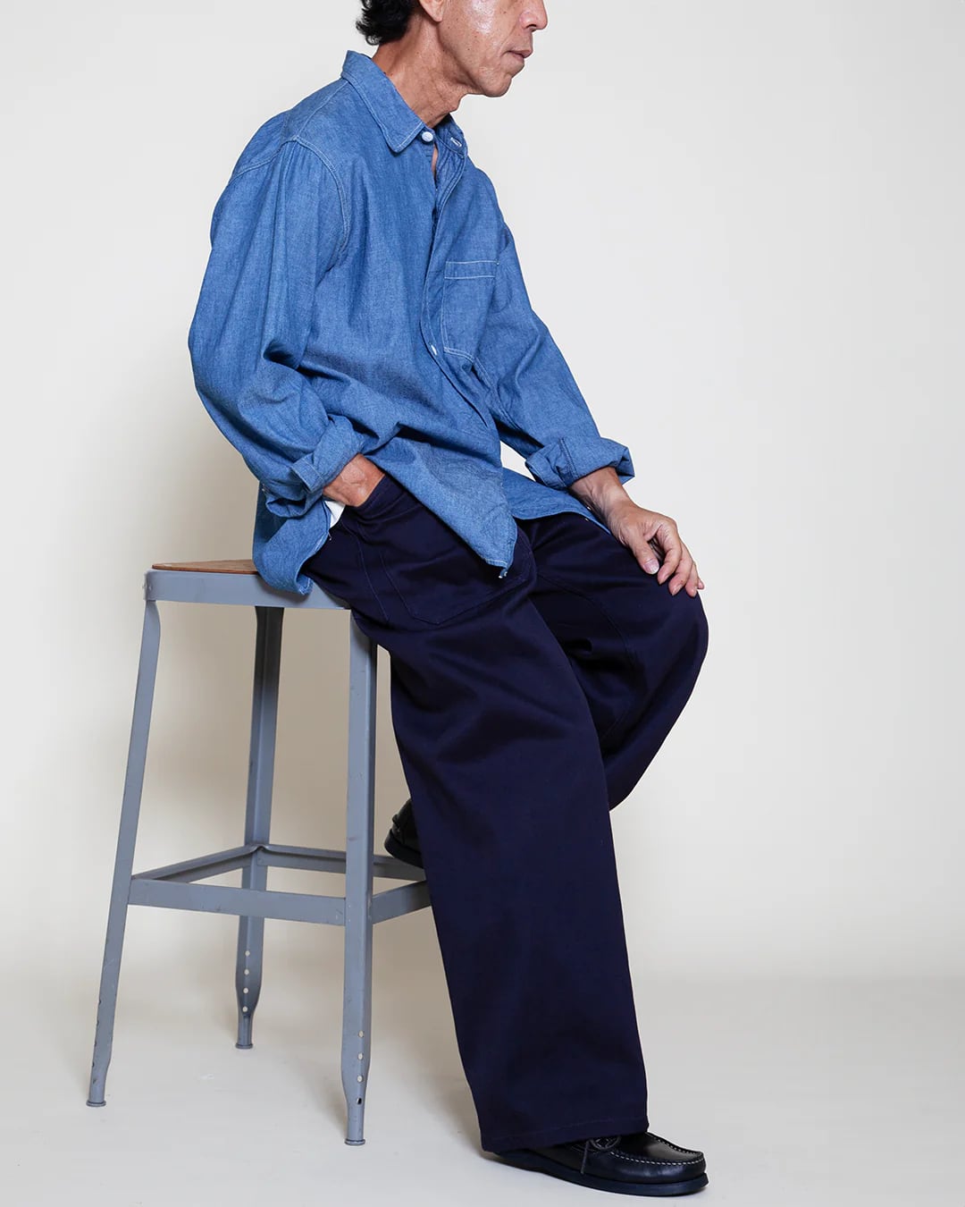 サイドシームの無い太めのセーラーパンツシルエットが特徴です。
