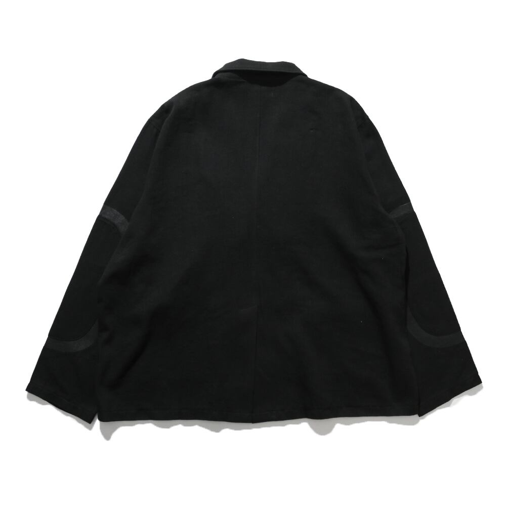肘にはプリント加工の上に共地を重ねて叩きつける補強ディテールを施し、機能と装飾をひとつに。