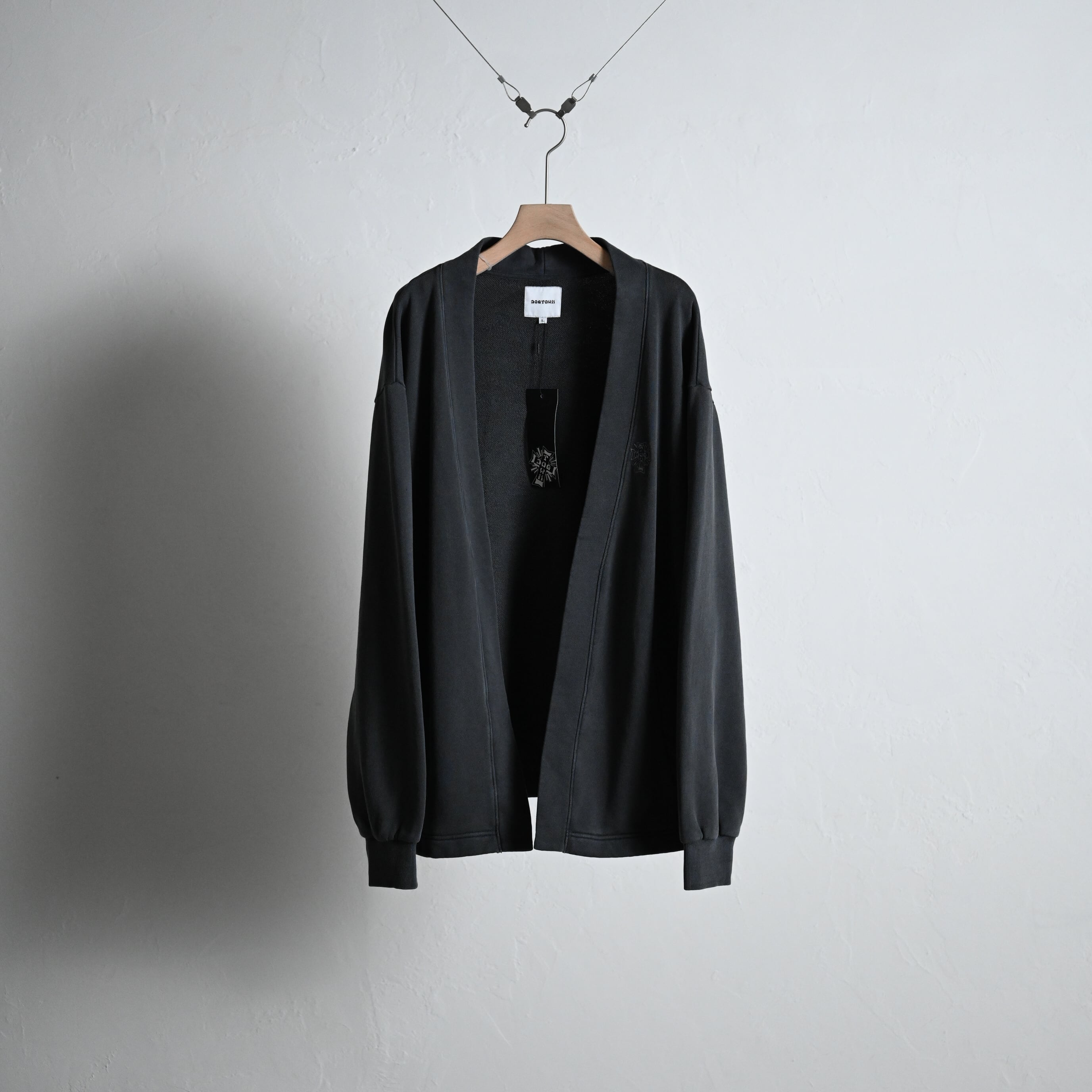 裏毛のスウェットで作成したノーボタンカーディガン。