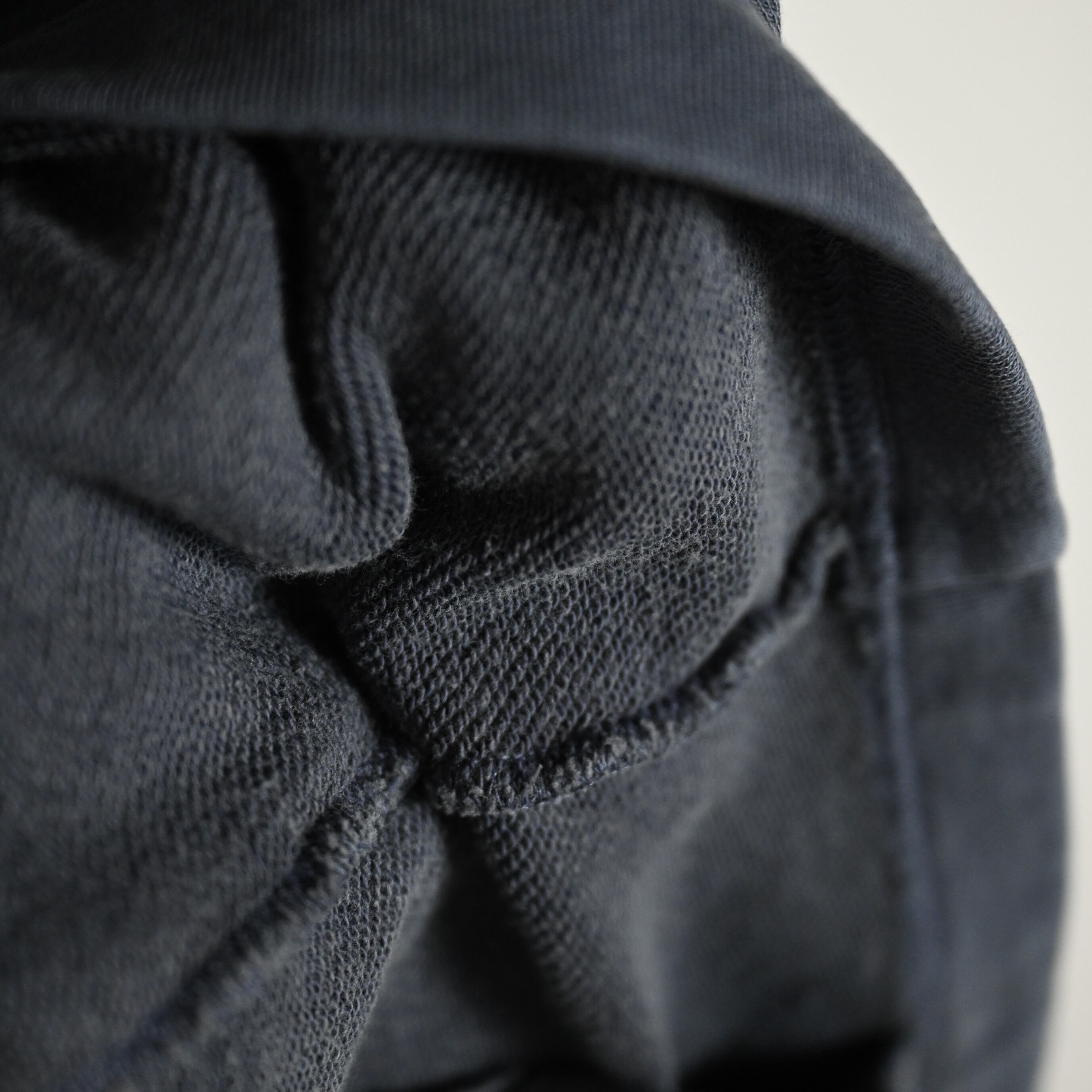 裏毛のスウェットで作成したノーボタンカーディガン。