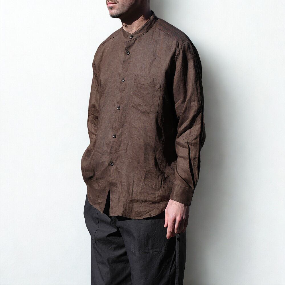 上質なフレンチリネンを使用した、春夏に最適なバンドカラーシャツ。