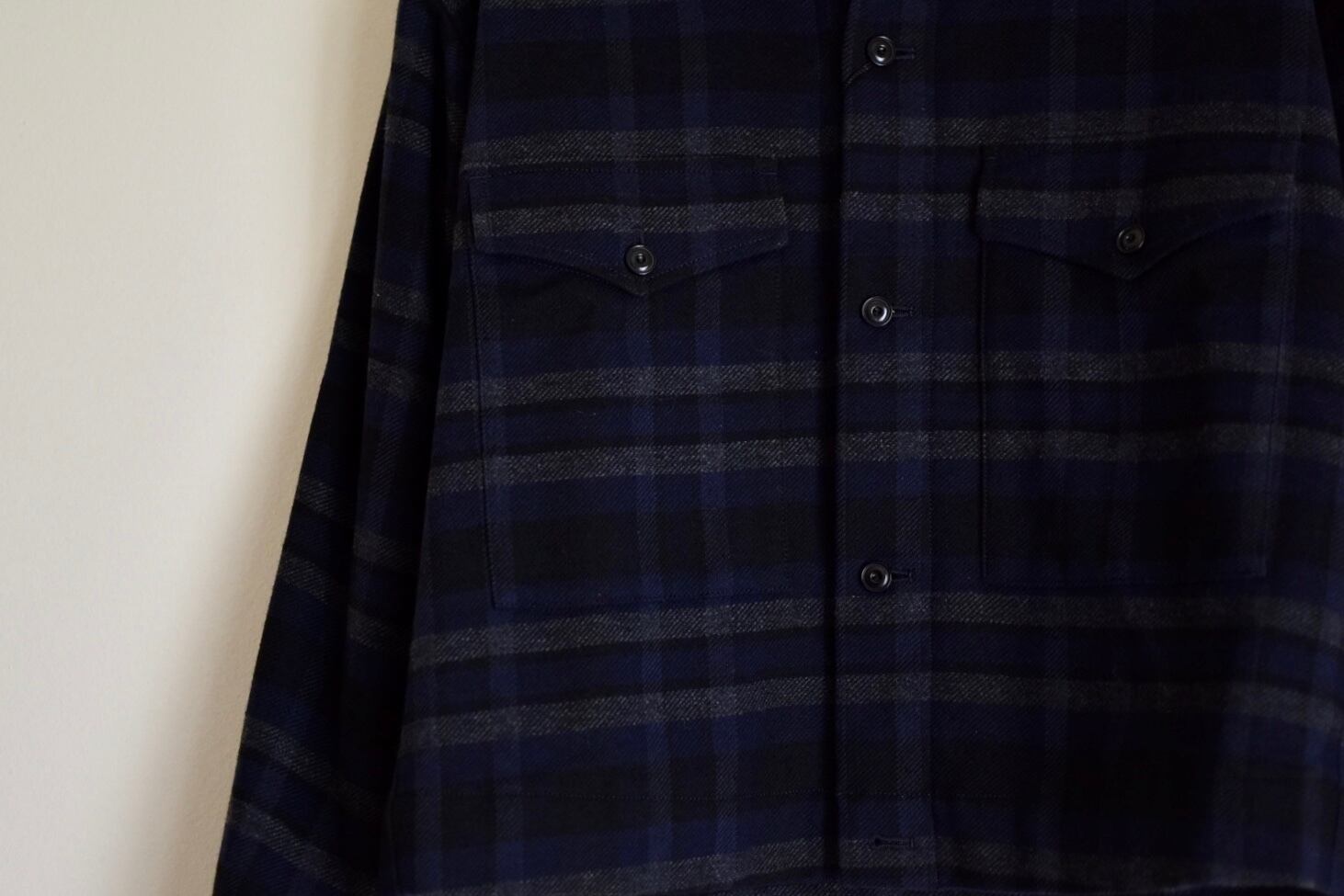 大きめのパッチポケットやフラップ、わずかにインカーブする衿など、古着を彷彿とさせる細かなディティールがポイントです。それらを現代のムード合わせたシルエットに拘りながら、ドロップショルダーやゆったりとした身頃のサイジングに落とし込みました。