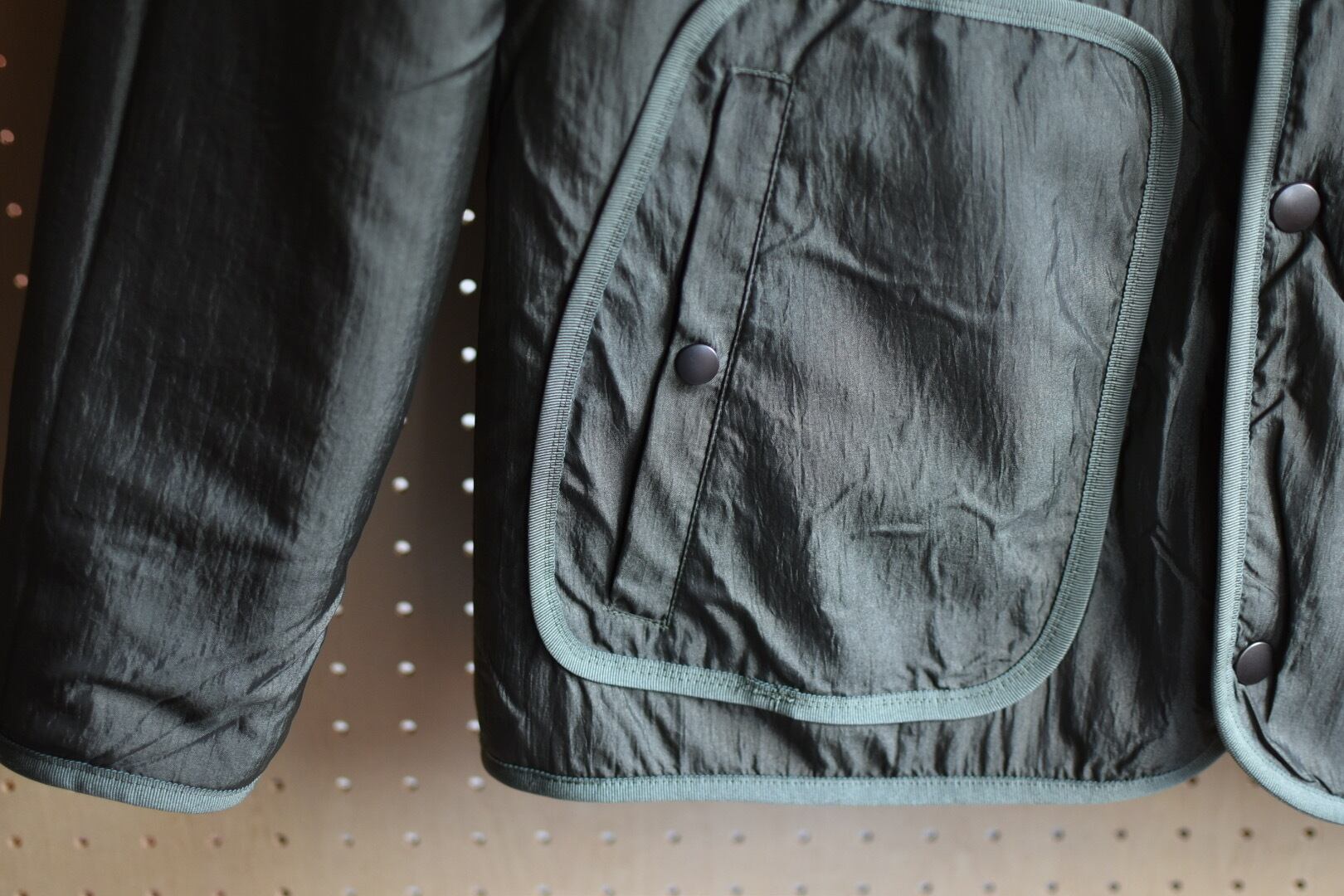高密度のボアとシボ感あるナイロンのリバーシブルジャケット。ノーカラーでスッキリした印象です。ショート丈でパイピングが特徴的な仕上がりです。