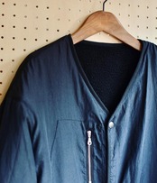 高密度のボアとシボ感あるナイロンのリバーシブルジャケット。ノーカラーでスッキリした印象です。ショート丈でパイピングが特徴的な仕上がりです。