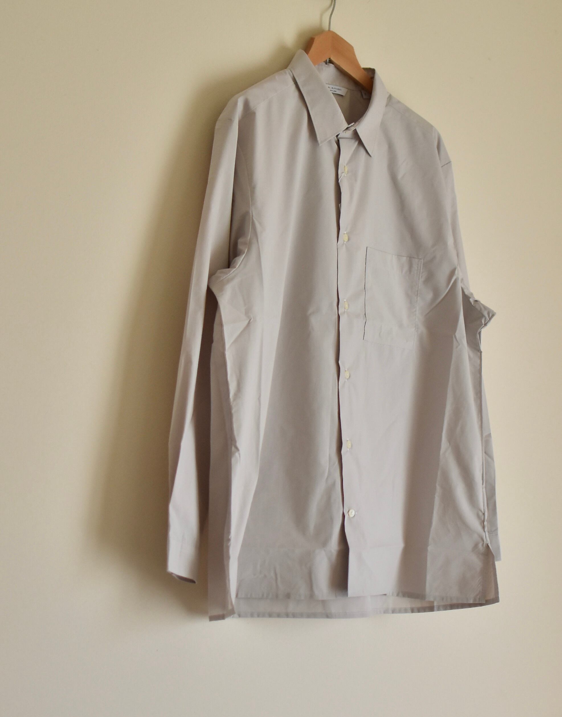 ステッチを省いたミニマムなデザインが特徴のリラックスフィットのレギュラーカラーシャツ