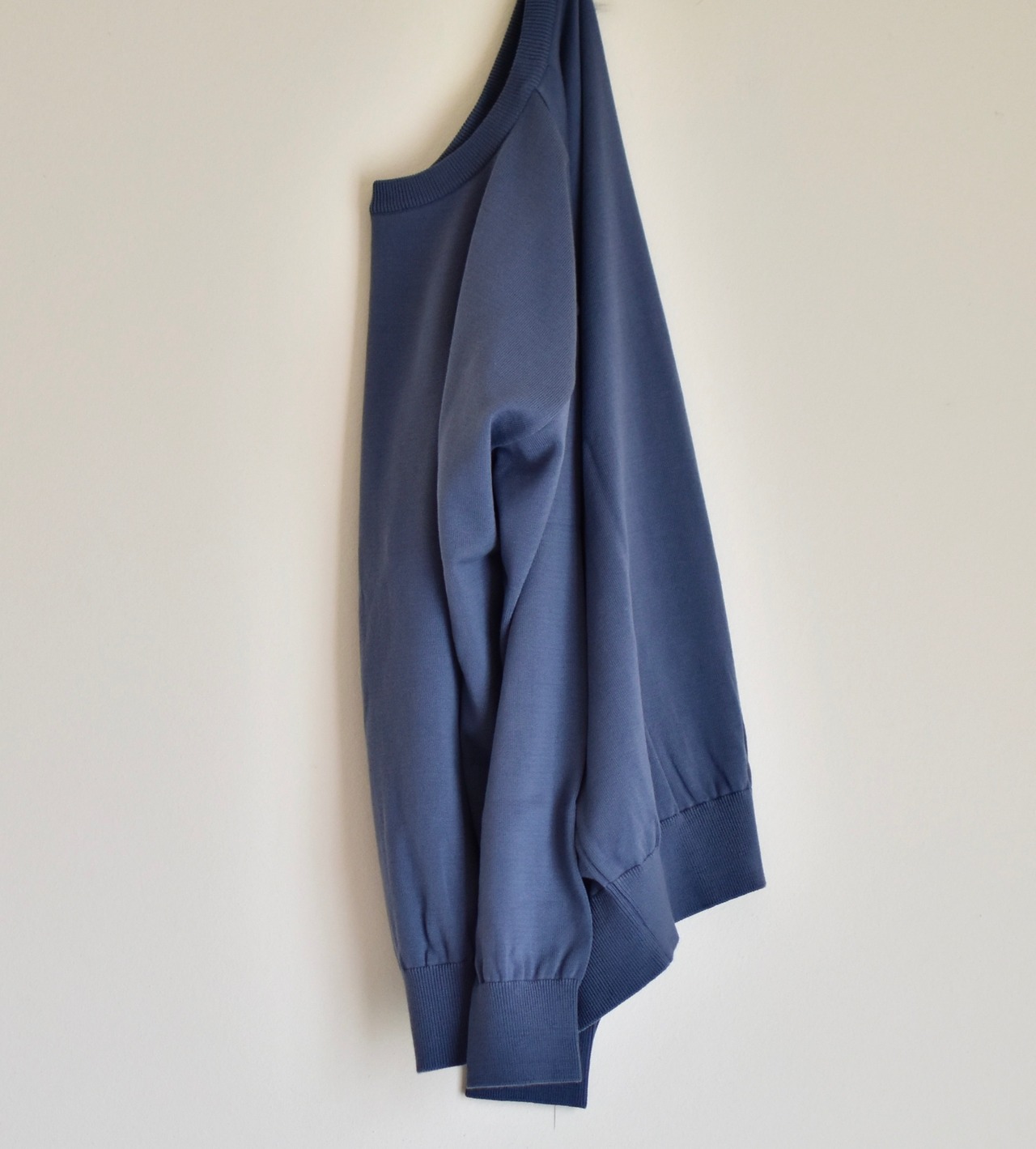 シンプルなクルーネックのデザインと少しゆったりとしたシルエット、国内有数のニット産地で生産された上質のクオリティが着心地の良さとほどよい抜け感を生み出した人気アイテムです。