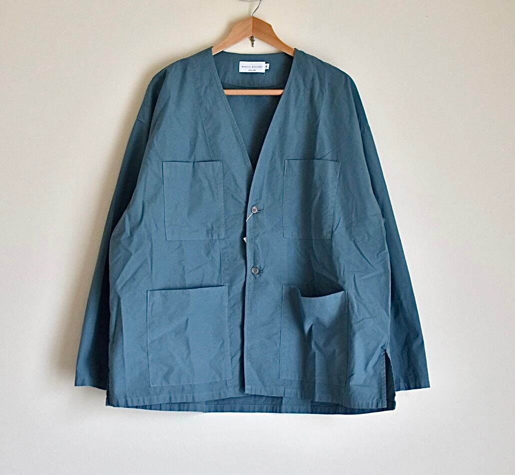 ファティーグジャケットを彷彿させる大きなパッチポケットと、カーディガンのようなラインの首元のデザインがポイントです。
