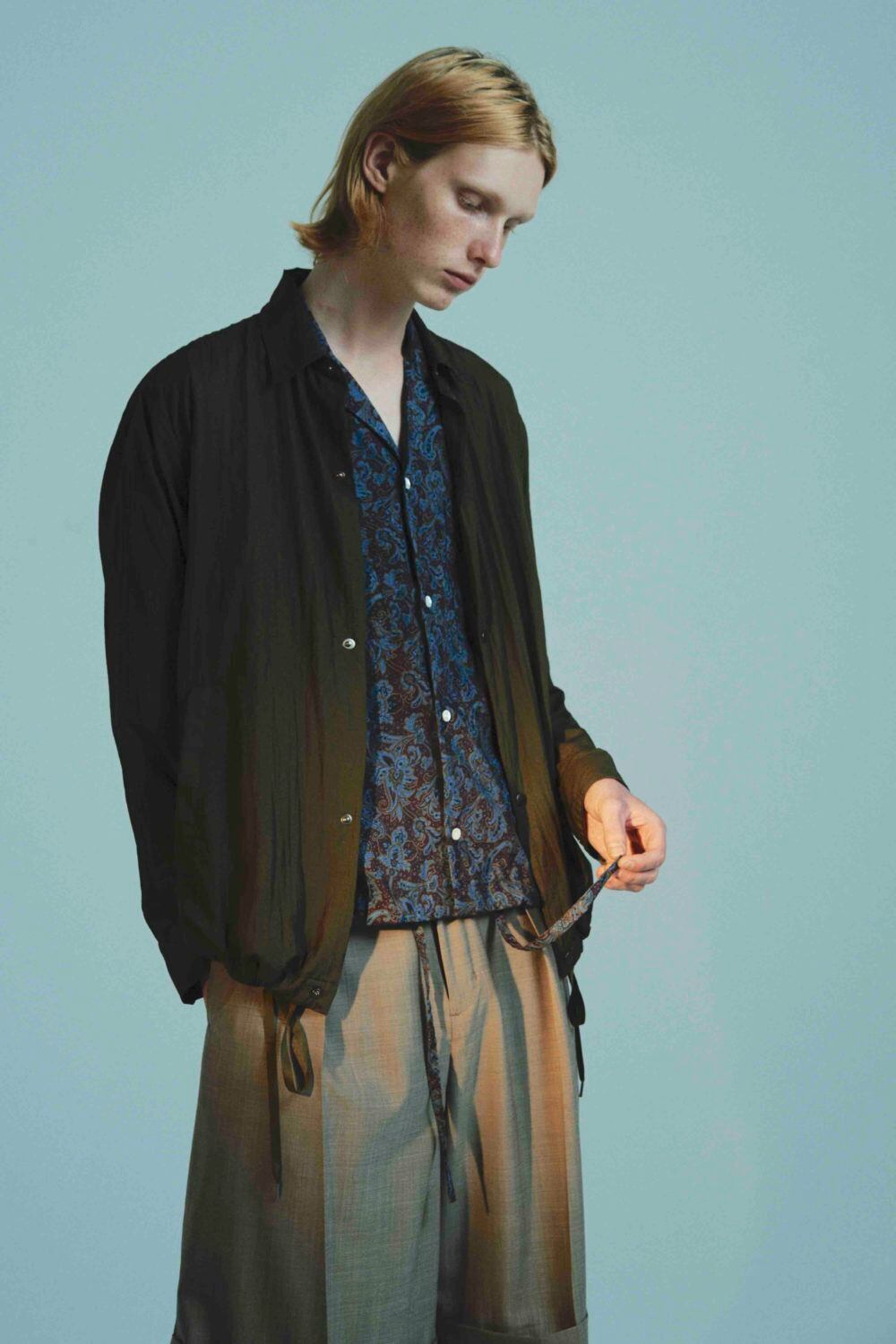ウールポリエステルのサラッとした風合いが肌に心地良く馴染み、何より美しい落ち感が最大の特徴です。