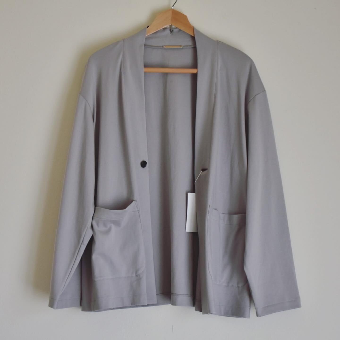 ワンボタンタイプのリラックスしたシルエット。両サイドにポケットを設けることでジャケットのような雰囲気にも見せるアウターライクな一着。
