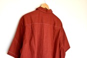 コットン/リヨセル/麻のキャンバス素材のオープンカラーシャツ。 天日干しで仕上げたようなナチュラルな風合いが特徴の素材を使用しています。 シルエットはややオーバーサイズのボックス型で、リラックスしながらも男らしい雰囲気に。 配色のステッチとリングスナップボタンも良いアクセントになっています。