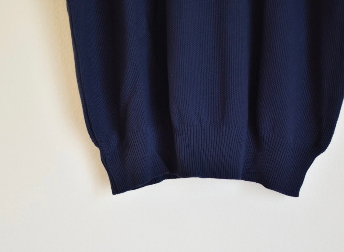 100/2の強撚コンパクト糸で通気性の良い鹿の子織に仕上げたクルーネックニット
