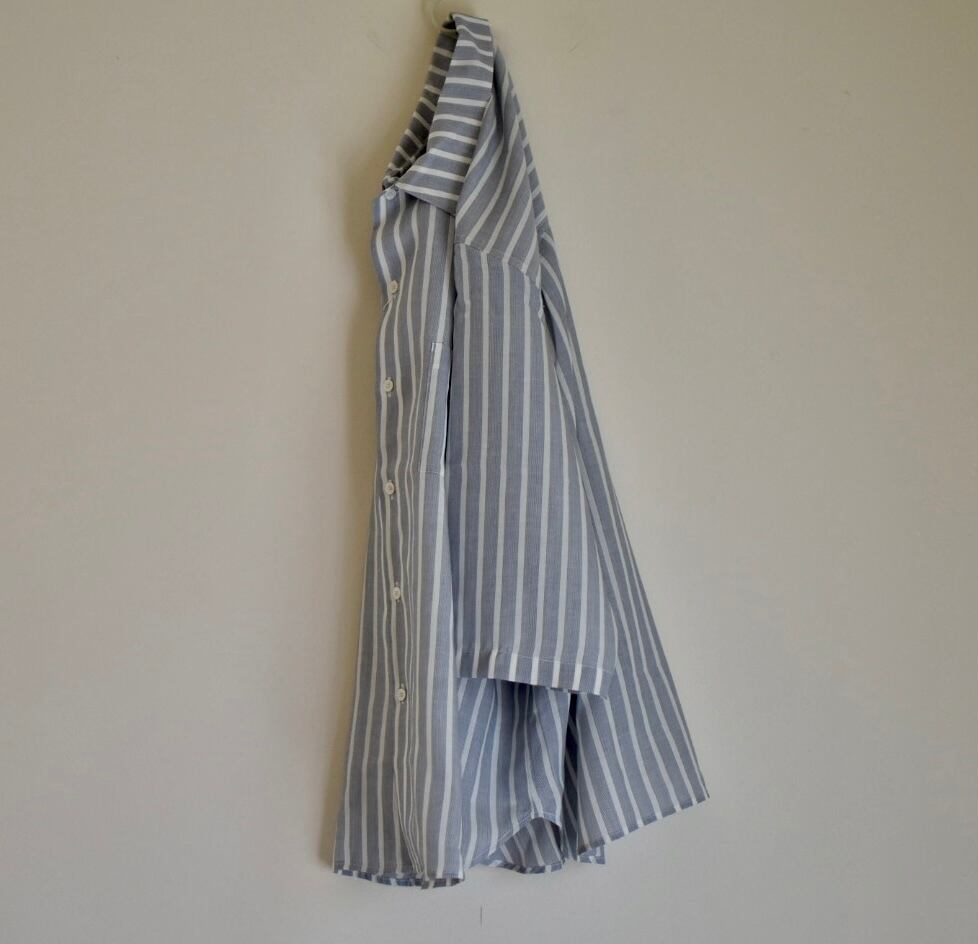 パターンは少し大きめのオープンカラー、広めのアームホールからストンと落ちる長めの袖丈がポイントで、従来の半袖とは違いリラックスしながらも上品な雰囲気にまとまっています。