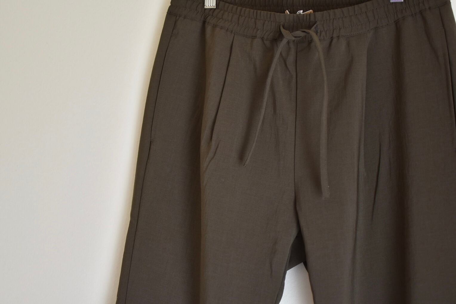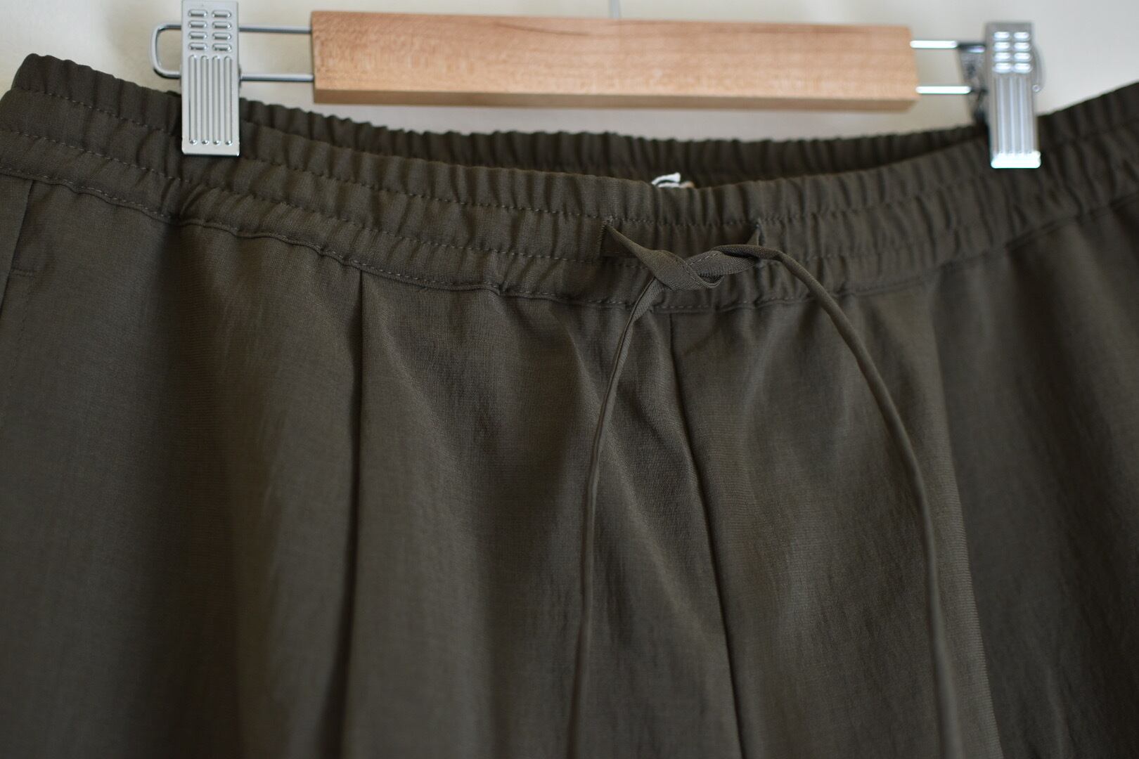 シボ感のあるシャリシャリしたエステル素材のイージーパンツです。非常に軽く速乾性もあり清涼感あるので暑い夏にはぴったりです。
