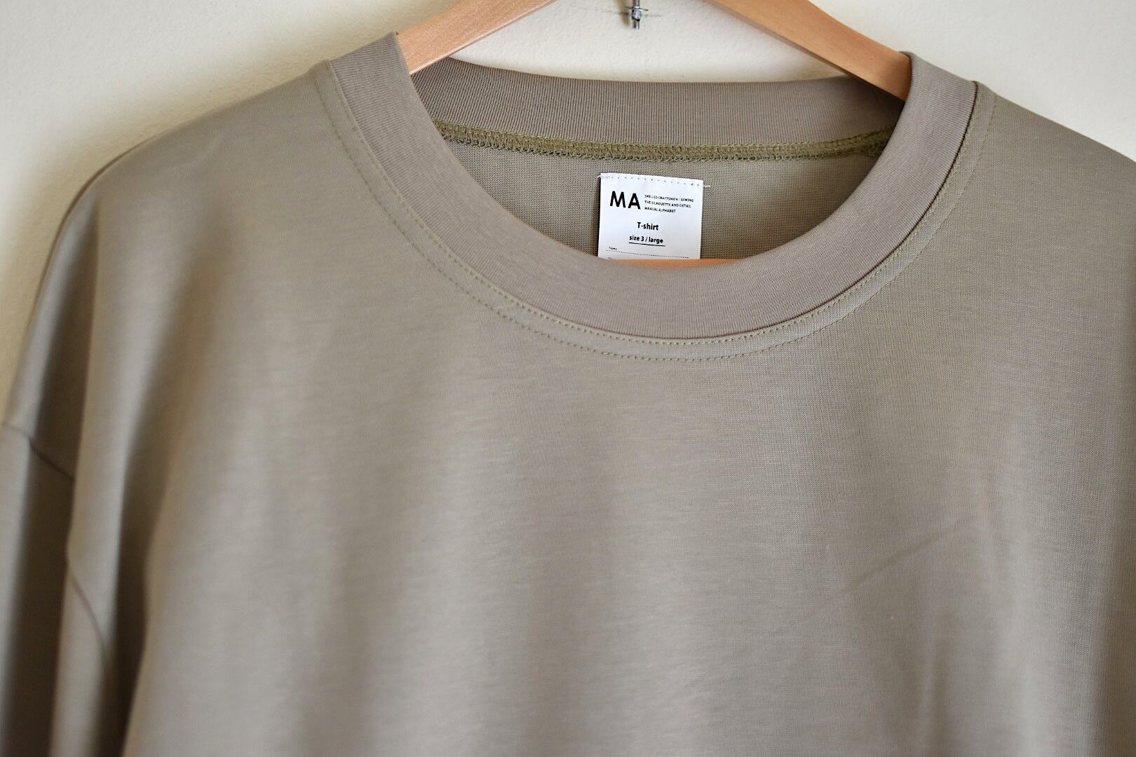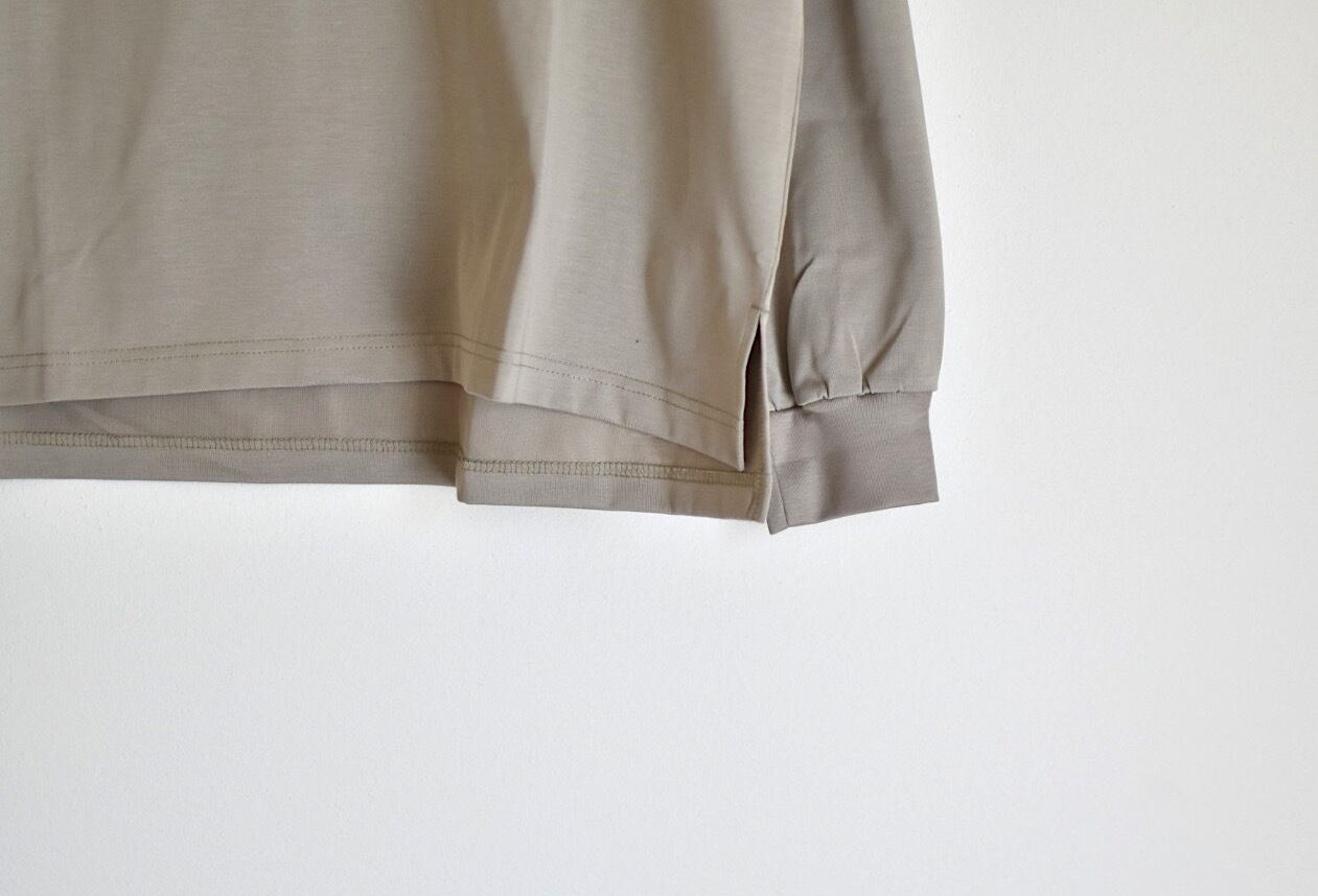 天竺ながら厚みのある肉感と美しい光沢感による上品な表情と、ゆったりしたサイジングが相まって大人のための主役ロンTとして活躍します。