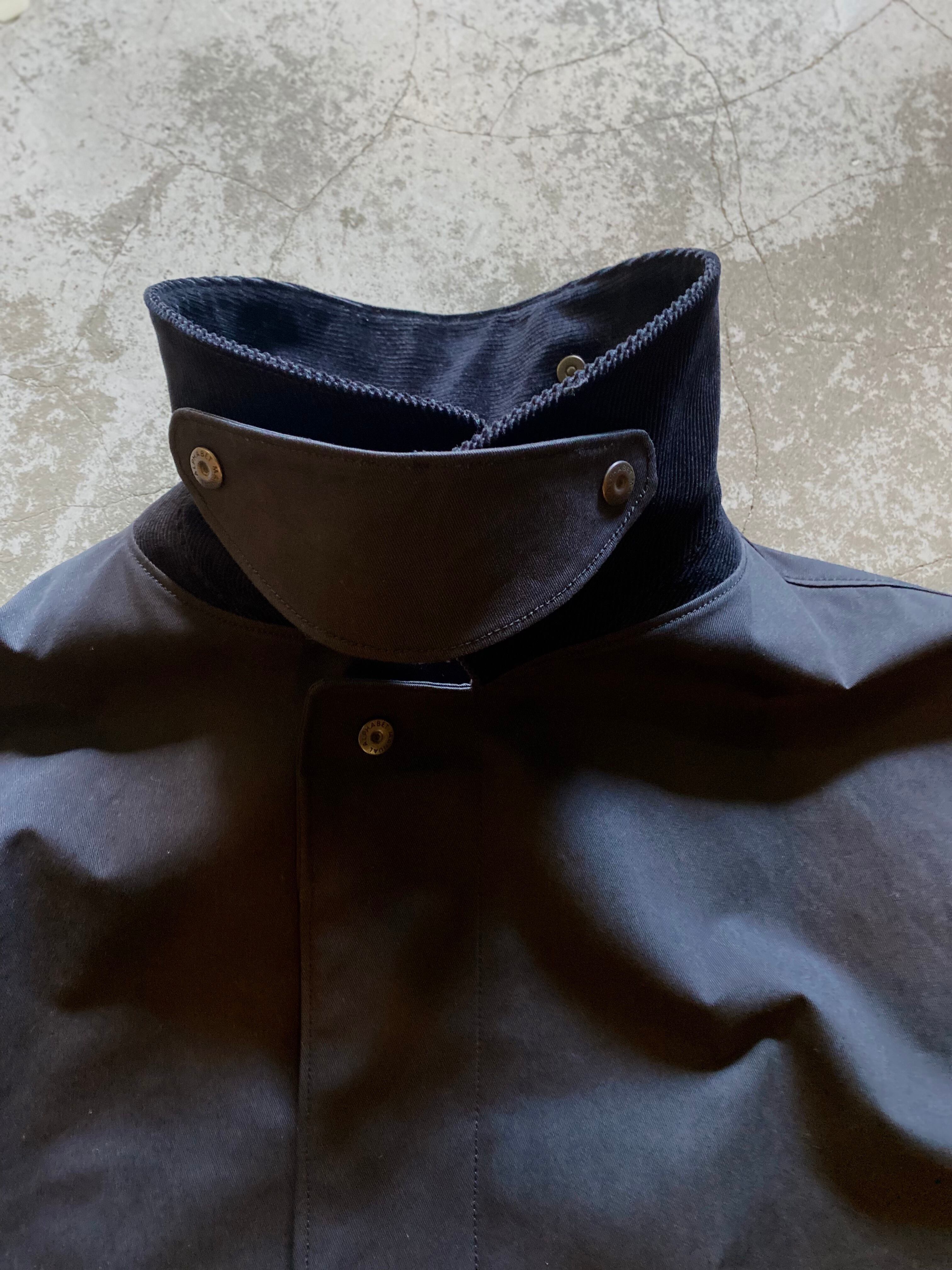 クラシカルながらビッグシルエットが新鮮なコットンナイロン素材のバルカラーコート。