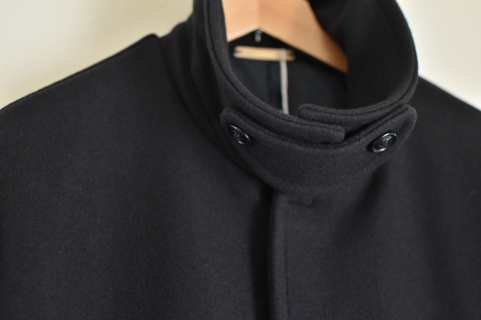 良質な原料をブレンドしたウールメルトンに、優れた撥水性、撥油性、防汚性のあるプルーフ加工を施した、天然素材にハイテク加工が融合したハイブリット素材を採用したオンオフで活躍するコート。