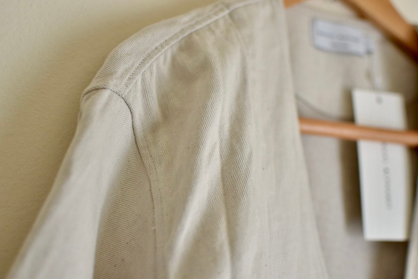 素材はサフィラン社のピュアフレンチリネンを使用した9.7ozの綿麻デニムを使用。