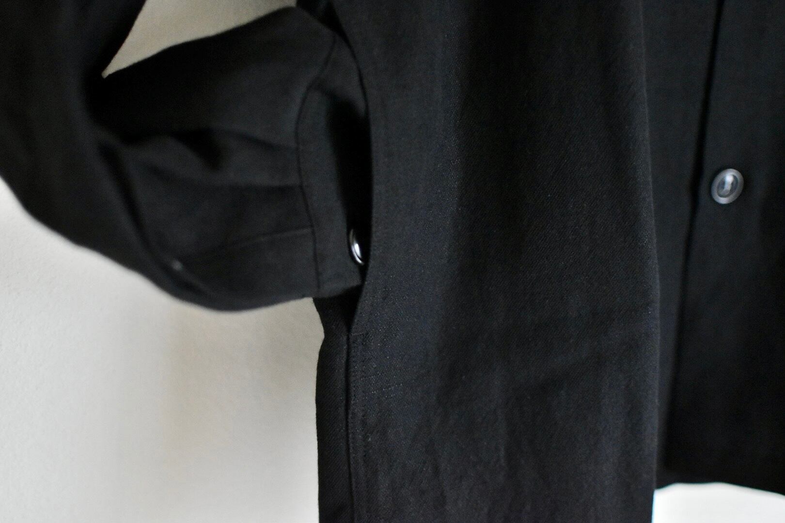 *素材は、経糸にウール、緯糸にフレンチリネンとコットンを使用した高級感ある風合いが特徴の生地です。タンブラー加工をすることでよりナチュラルで柔らかな風合いを出しています。