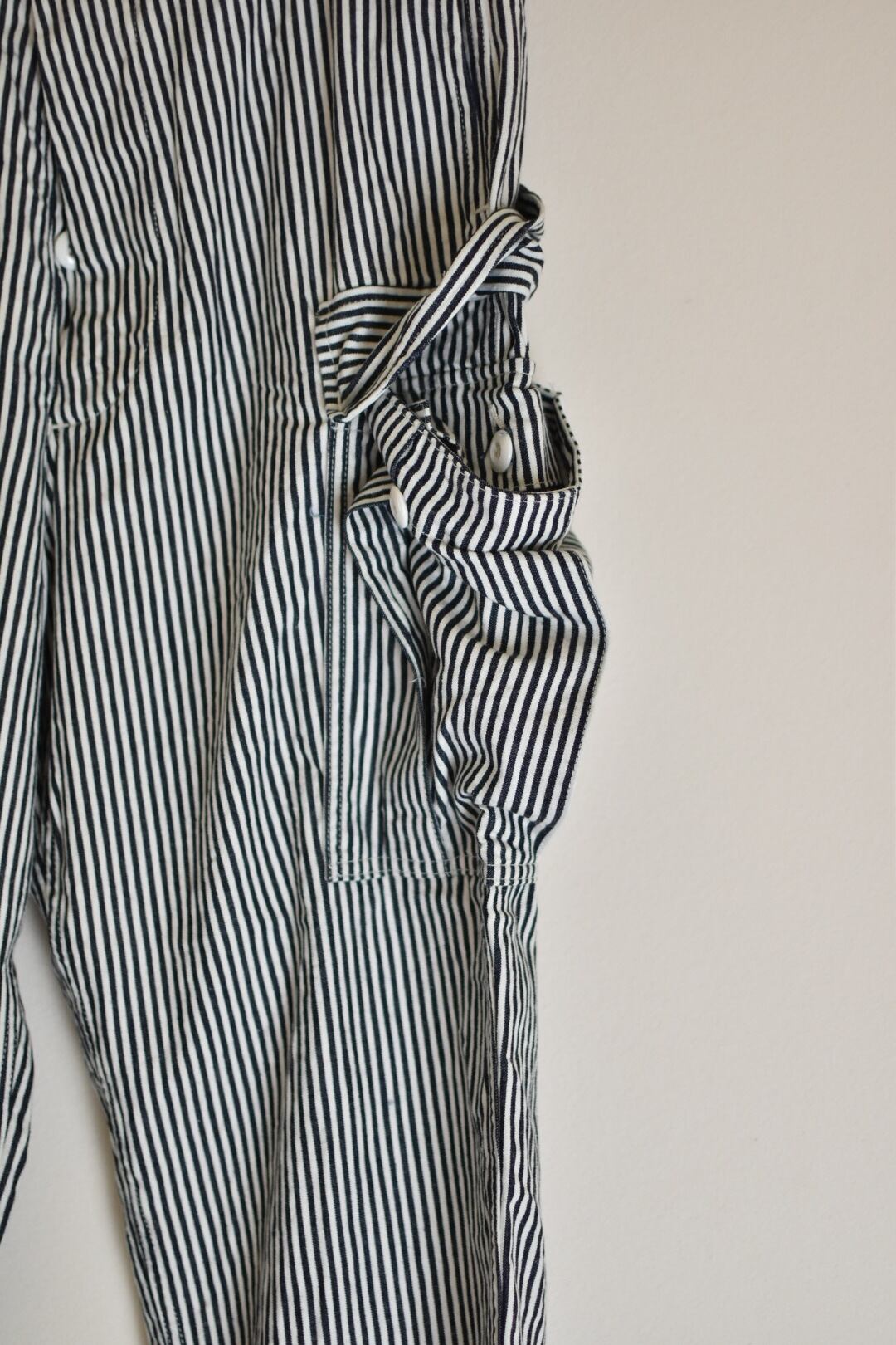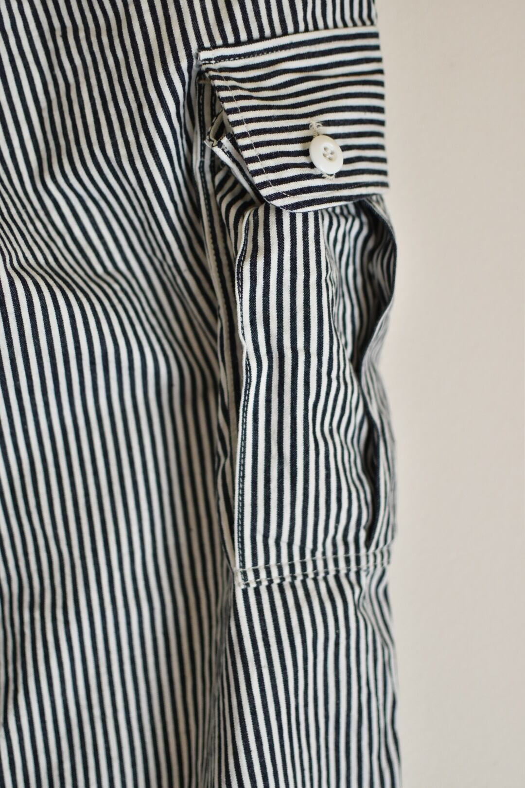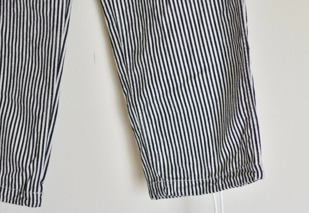 生地は、2022春夏用の弊社オリジナルテキスタイルとして制作した8.5oz ヒッコリーストライプを使用。