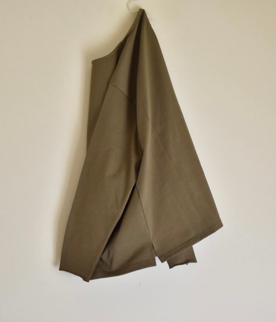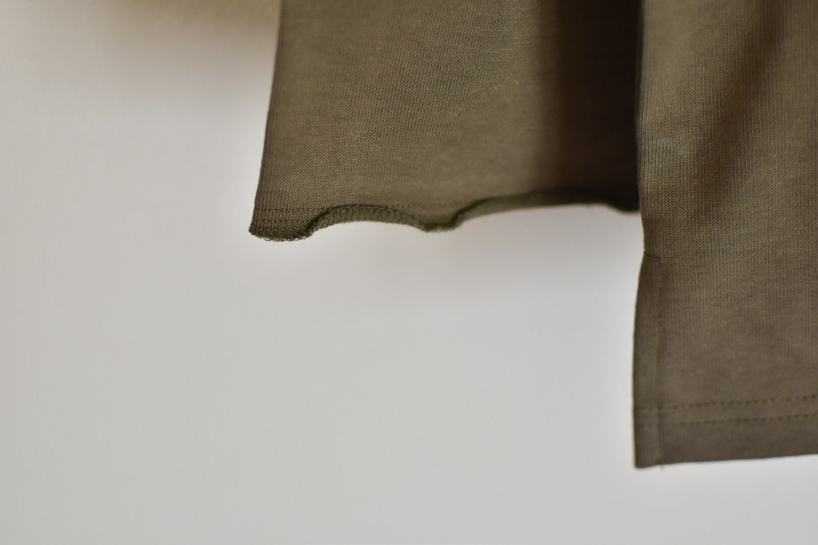 袖口はゆったりめでカットオフ仕様にすることでラフさを加えています。襟元のボートネックとゆとりのあるサイジングがほどよいロンTEEです。