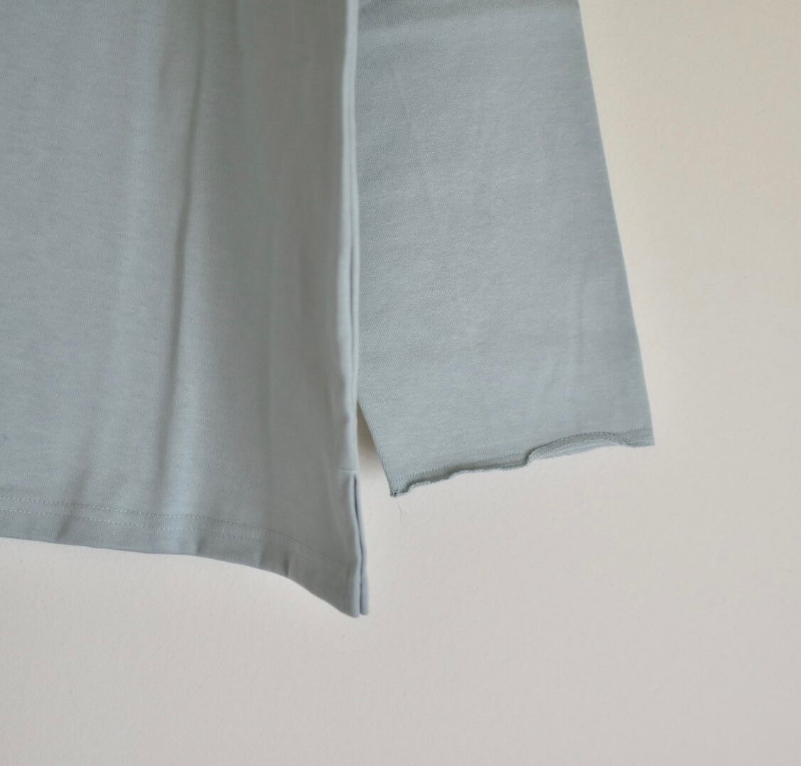 袖口はゆったりめでカットオフ仕様にすることでラフさを加えています。襟元のボートネックとゆとりのあるサイジングがほどよいロンTEEです。