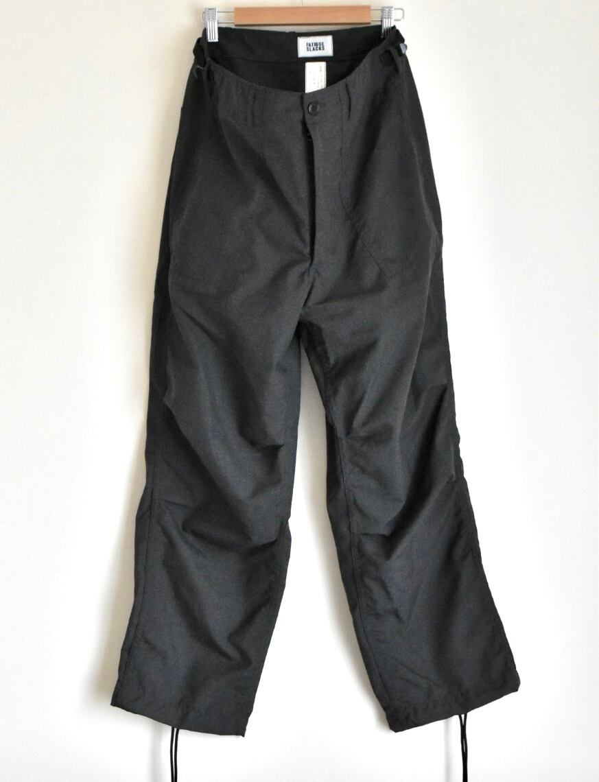 太いワタリから裾に向けてゆるくテーパードする穿き易い形で、後ろ身頃のバランスがやや大きいとてもリラックスできる穿き心地です。