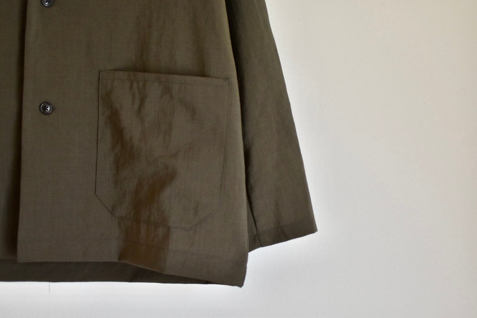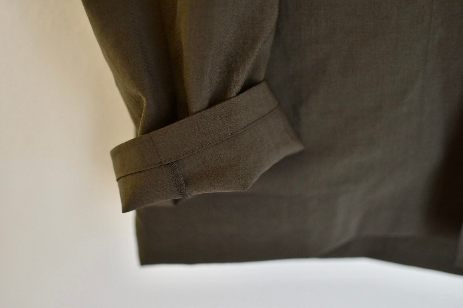 毎年定番のSHARI JACKETを、ノーカラーにすることによって、デイリーに着やすいアイテムになりました。仕事やある程度フォーマルな場面にも対応できます。昨年までのテーラードより、普段使いしやすいです。また洗濯にも強くイージーケアな所も魅力です。サラッとした質感はとても涼しく真夏の日差し避けとしても重宝するのでほぼ通年着用できます。